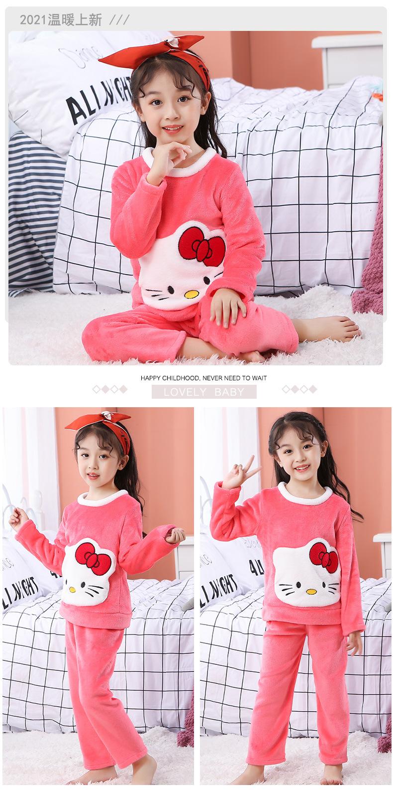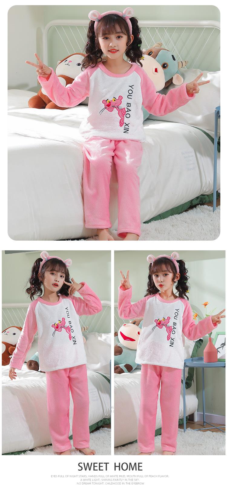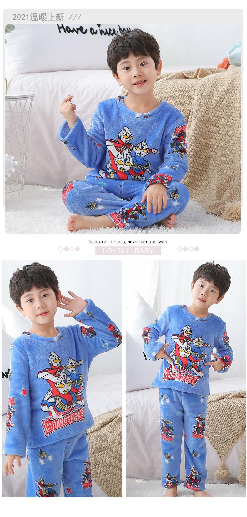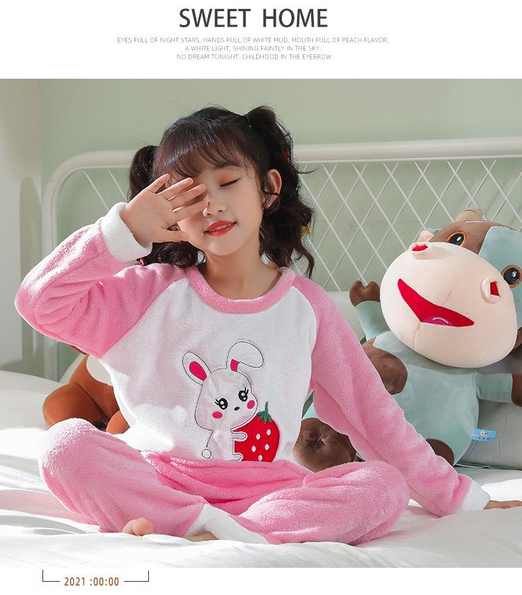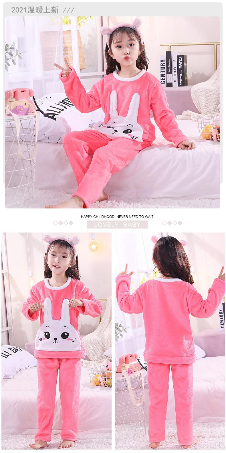 Pijamas de franela para niños, otoño e invierno, de forro polar coral grueso, para niñas y niños.