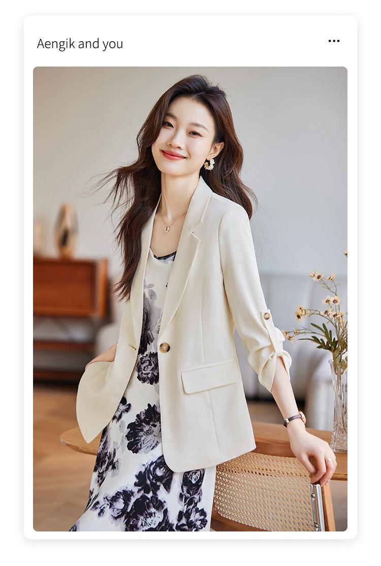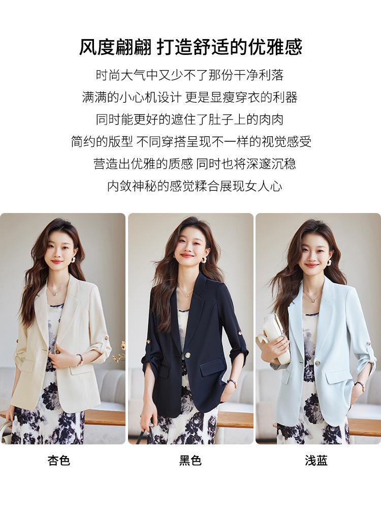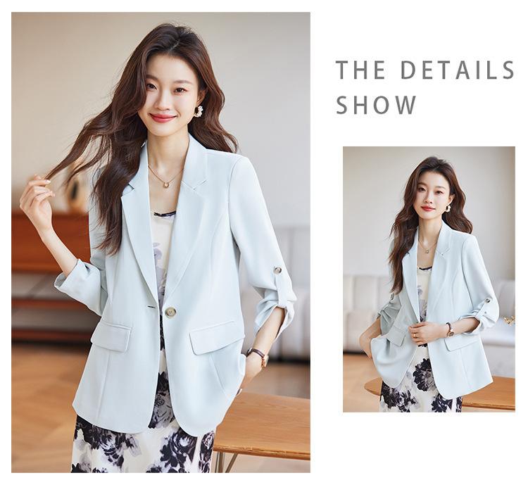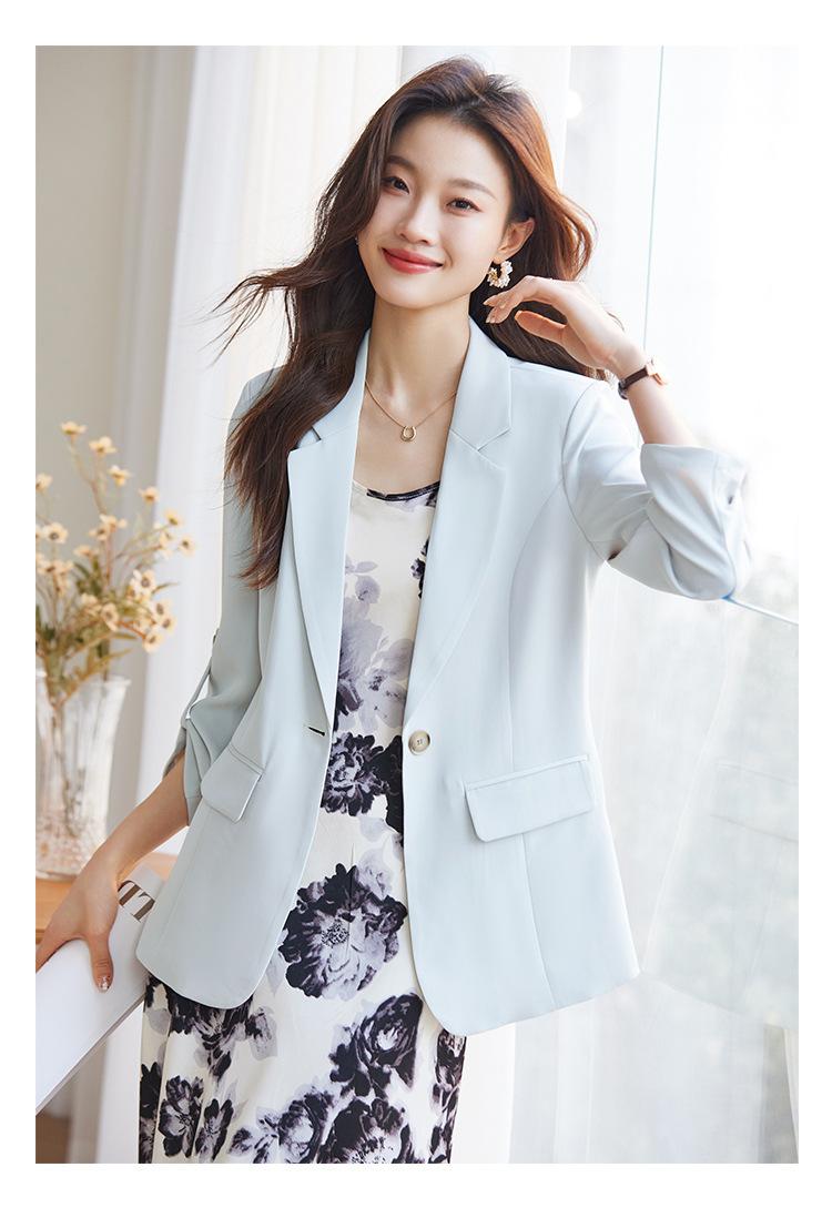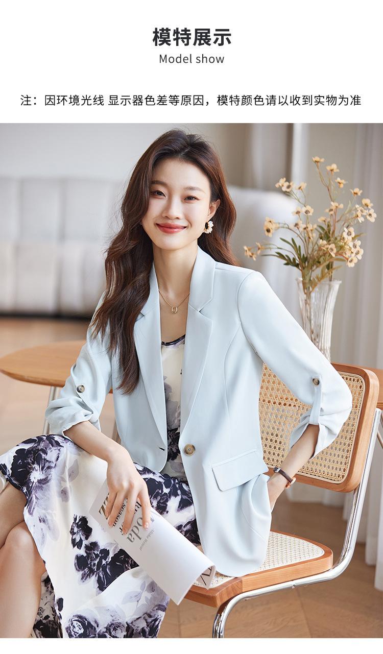 Azul claro Chaqueta de traje pequeña para mujer Verano delgada 2024 Nueva sentido de alta gama Traje pequeño de siete mangas Protección solar