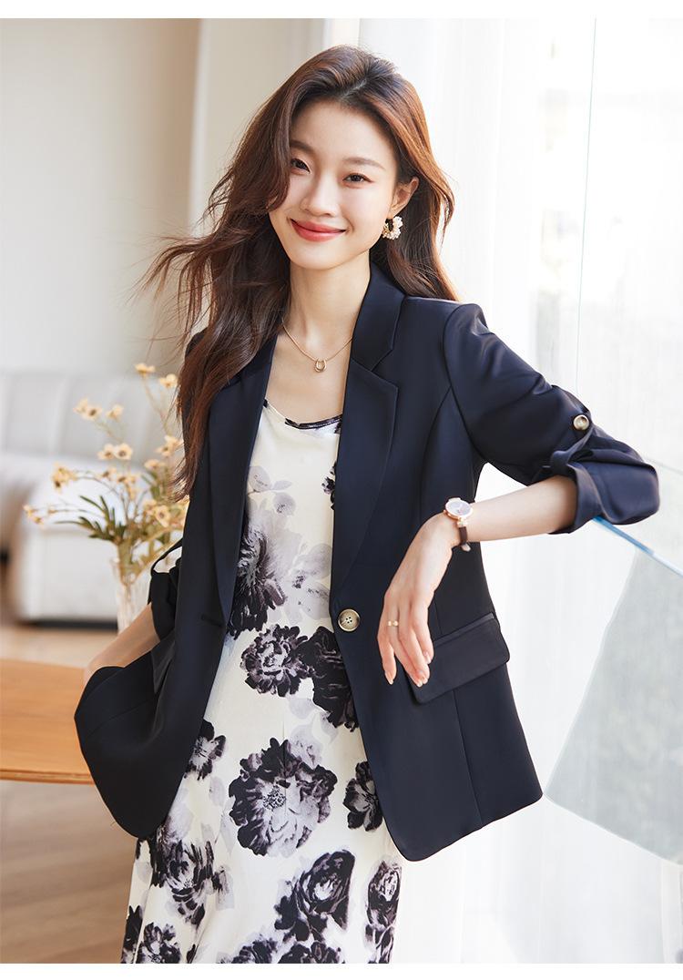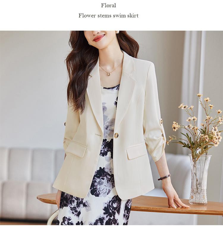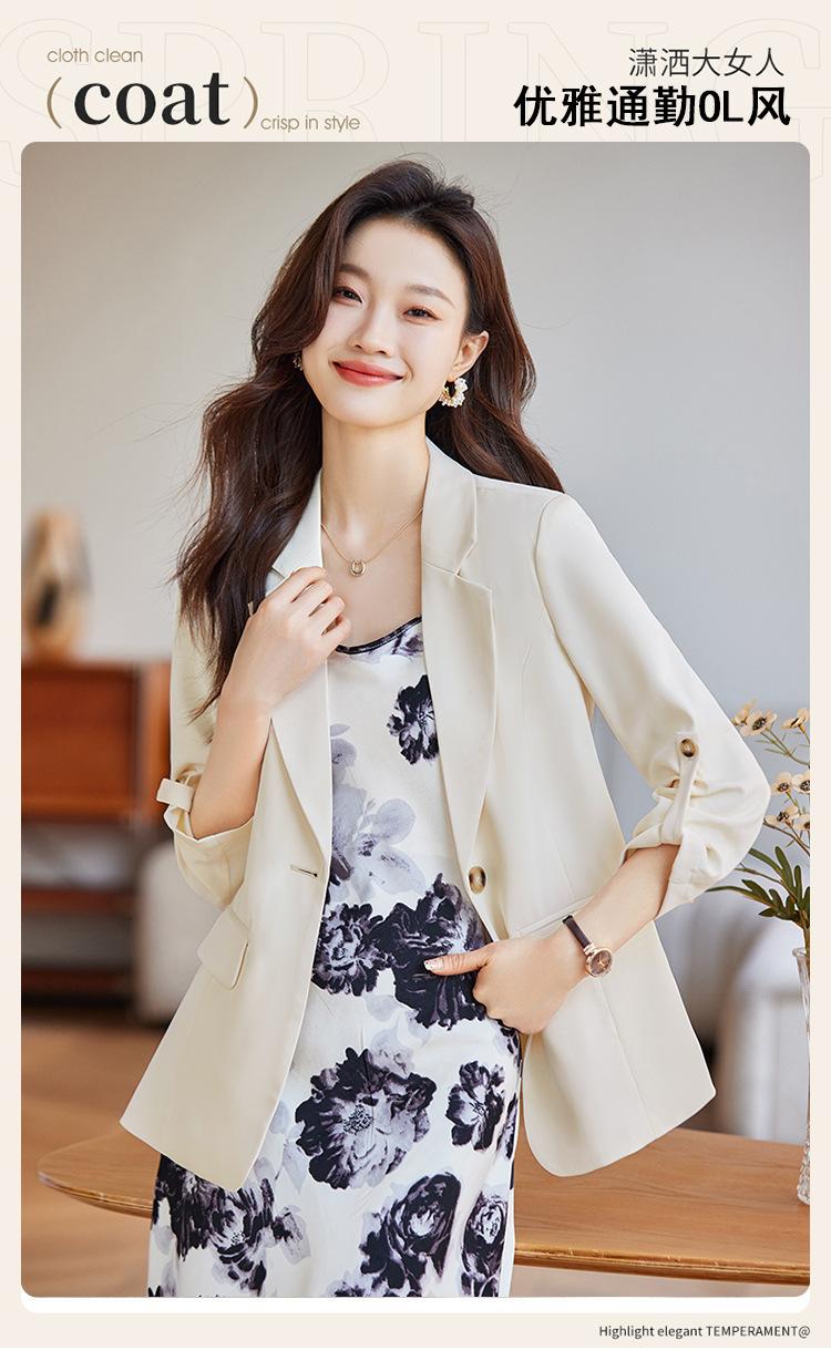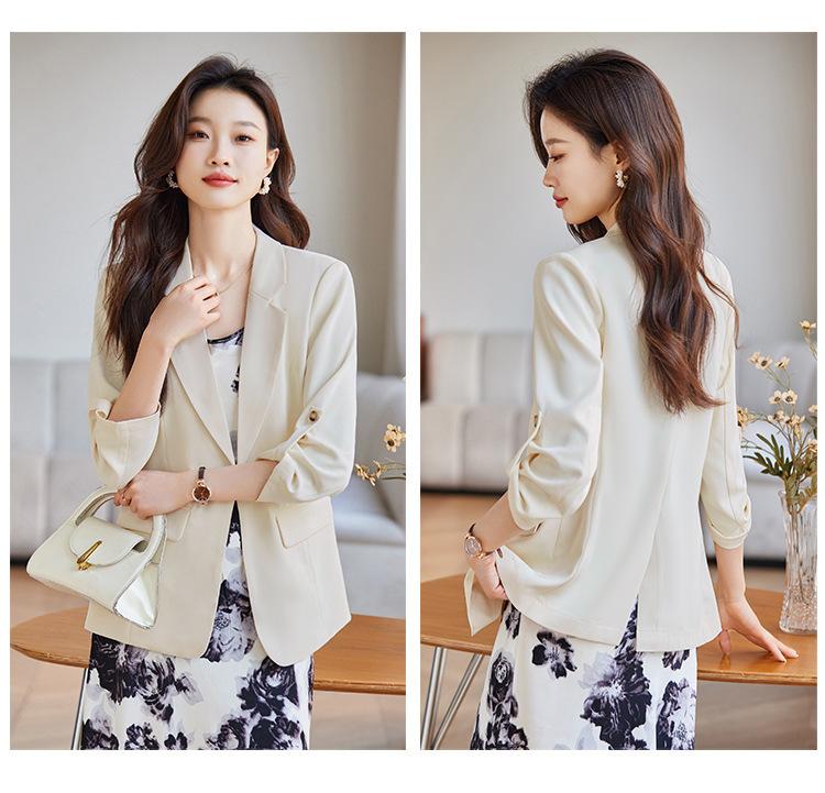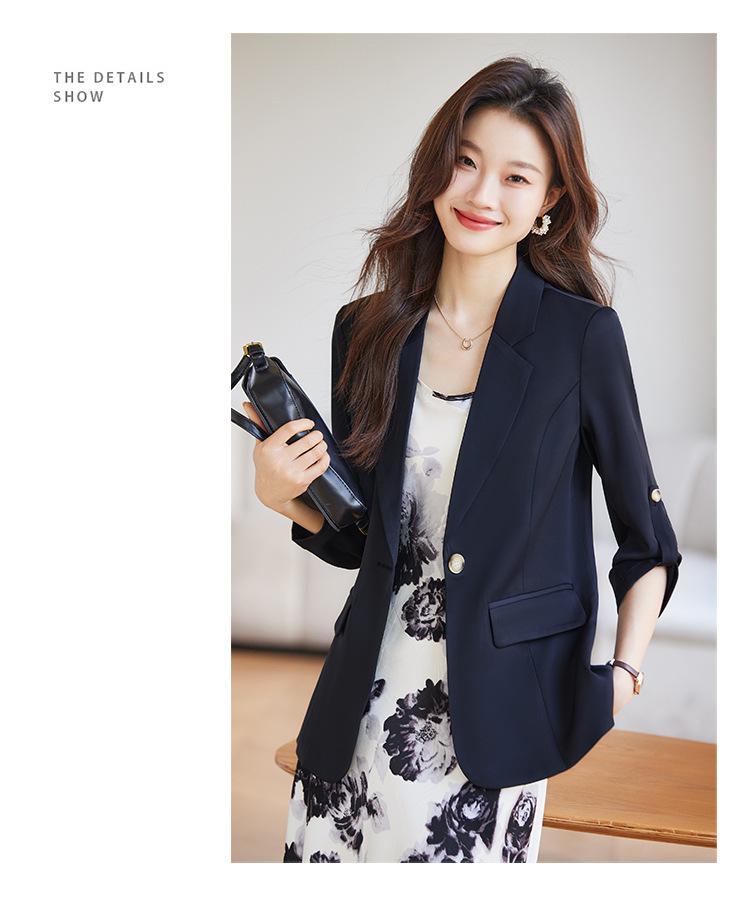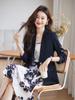 Azul claro Chaqueta de traje pequeña para mujer Verano delgada 2024 Nueva sentido de alta gama Traje pequeño de siete mangas Protección solar