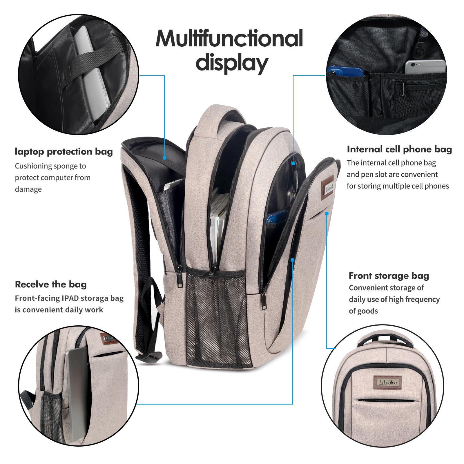 Nuevo Mochila para Computadora para Hombre de Viaje para Estudiante de Nailon Impermeable USB Transfronteriza Multifuncional para Negocios Ligera