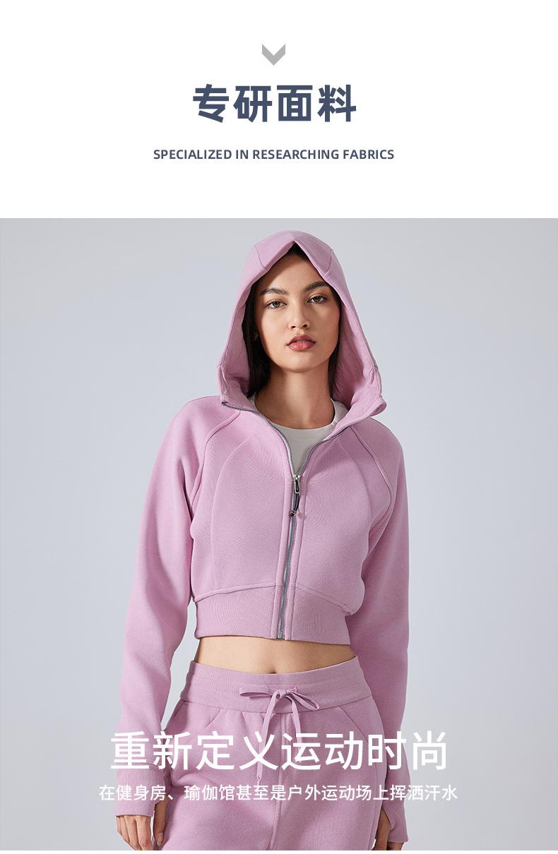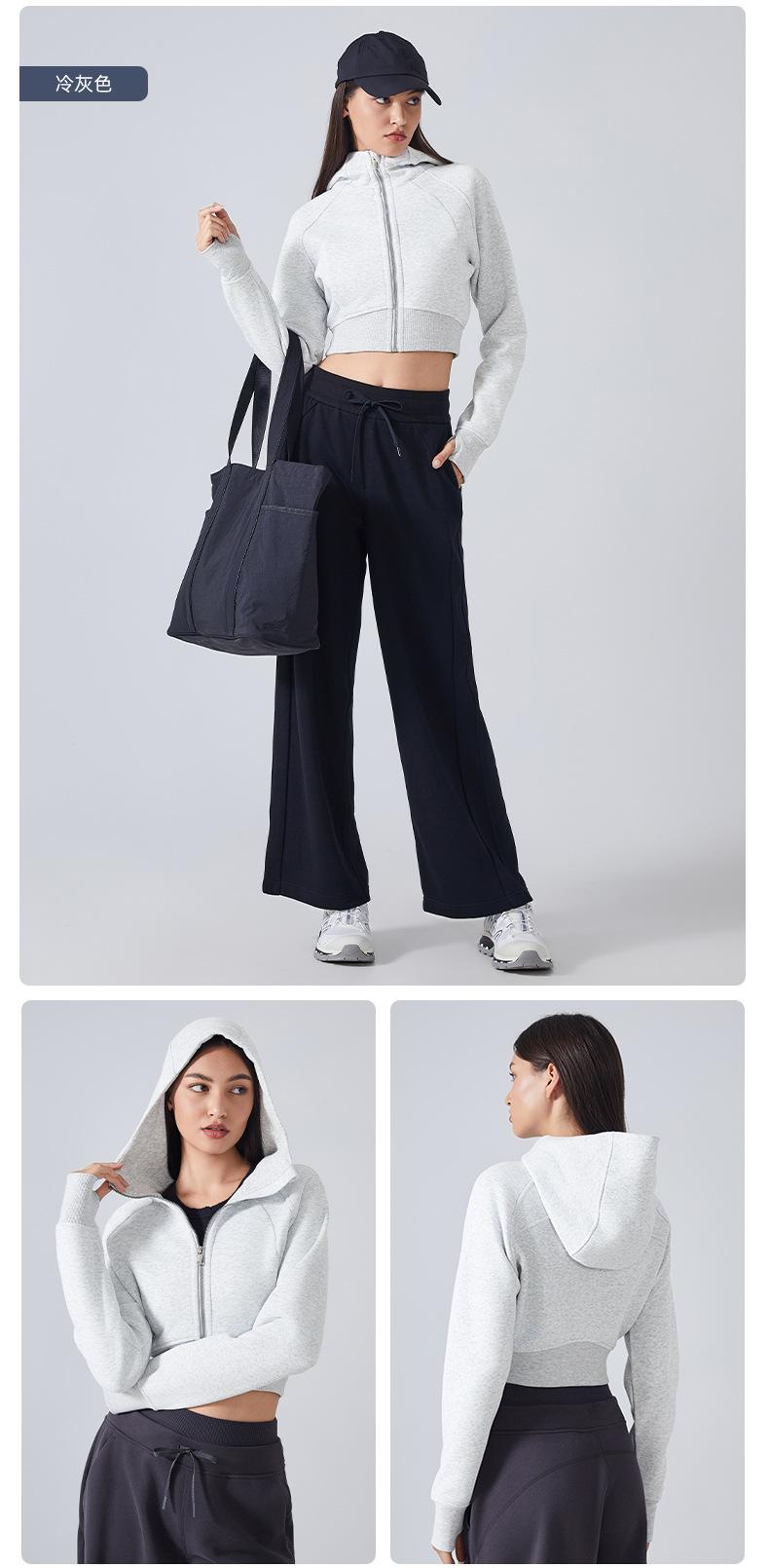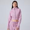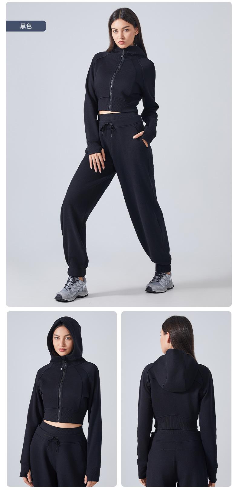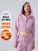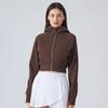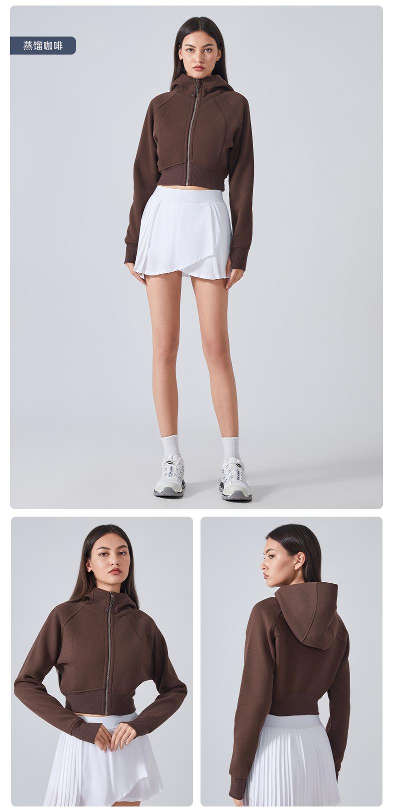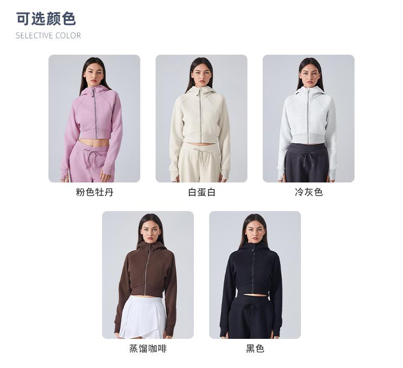Nueva chaqueta deportiva de otoño e invierno para mujer, chaqueta corta con cremallera, capucha, agujero para el pulgar, suéter cepillado, resistente al viento y cálida