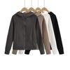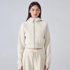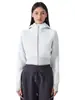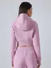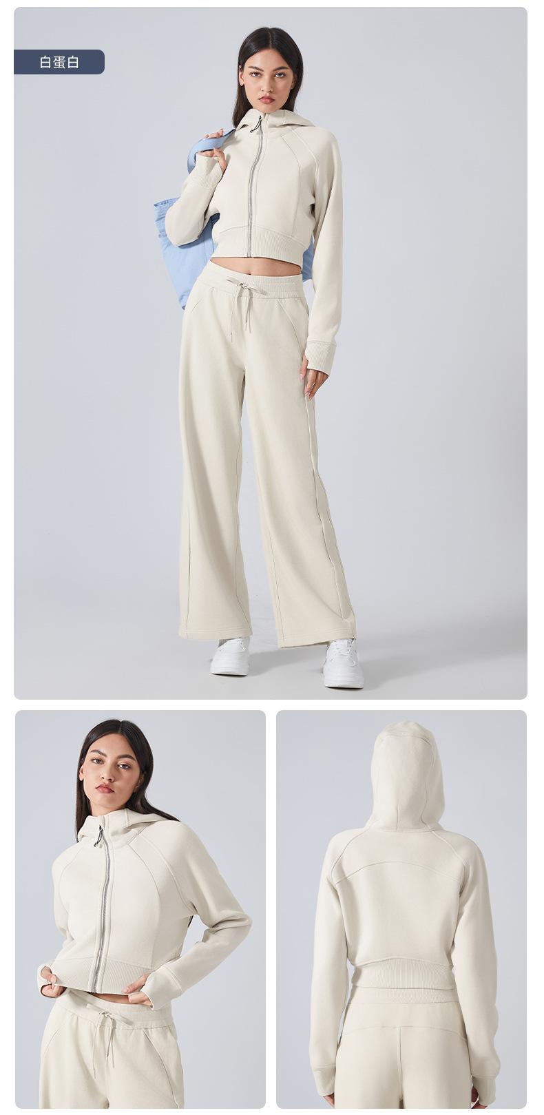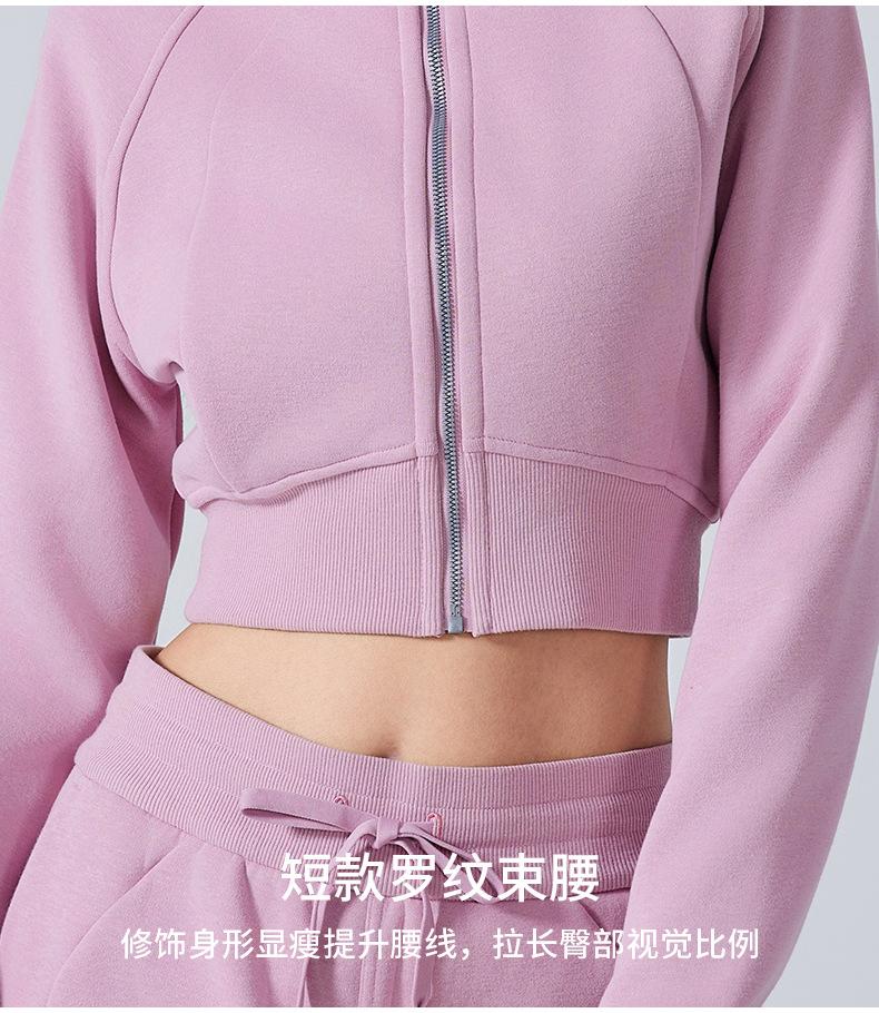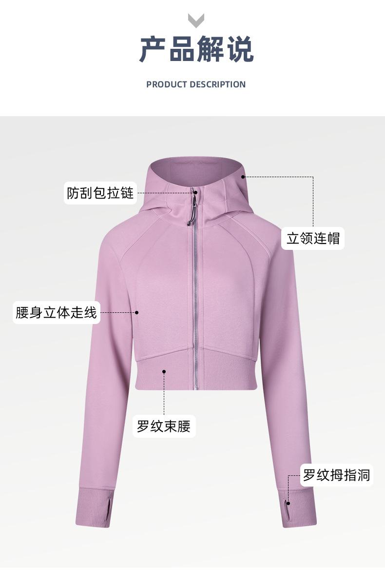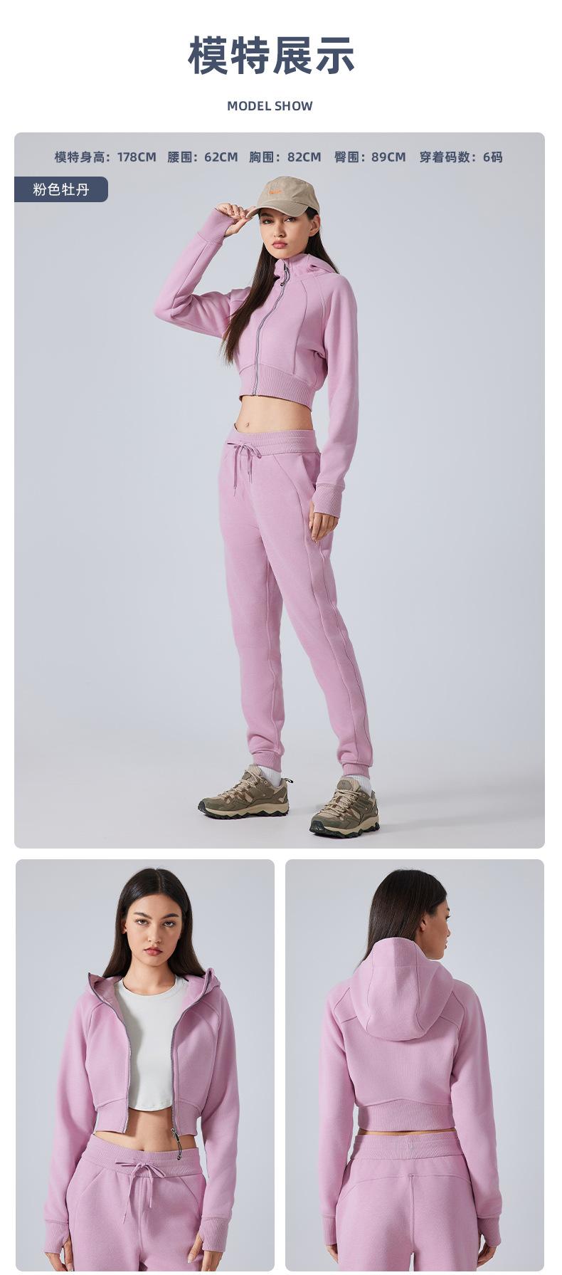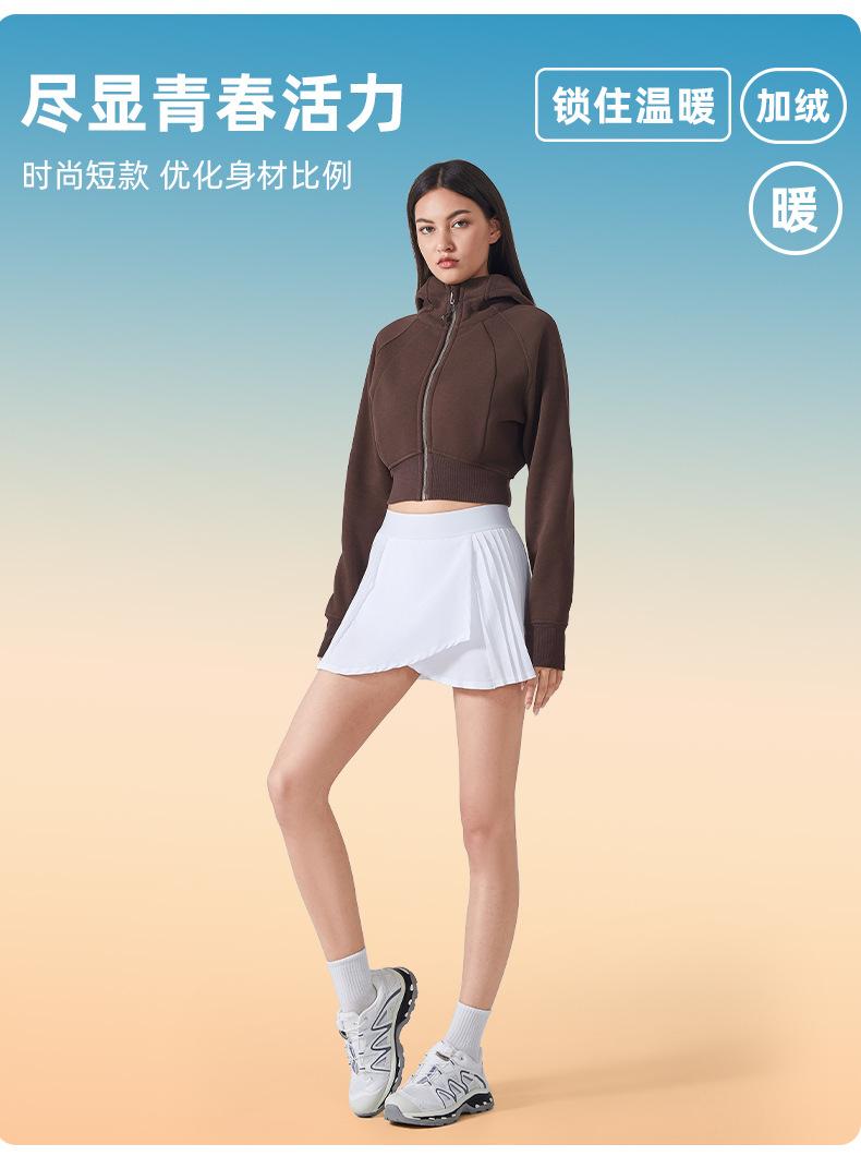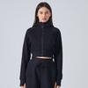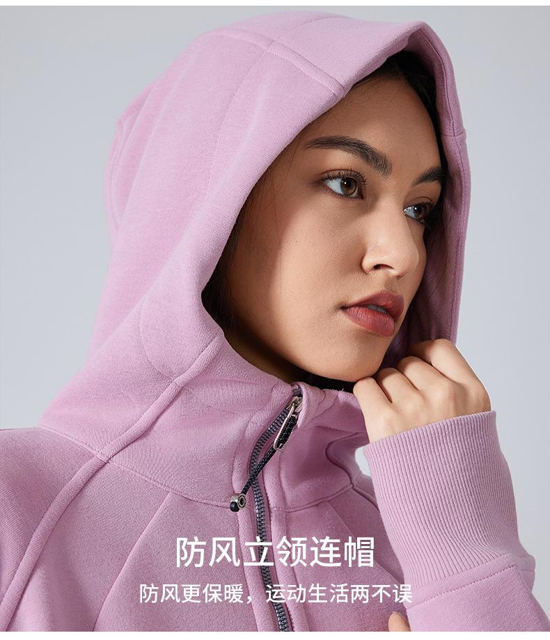 Nueva chaqueta deportiva de otoño e invierno para mujer, chaqueta corta con cremallera, capucha, agujero para el pulgar, suéter cepillado, resistente al viento y cálida