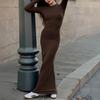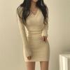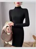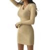 Vestido de punto sexy de manga larga con cuello en V para mujer, primavera y otoño, versátil, ajustado, suéter ajustado, falda hasta la cadera