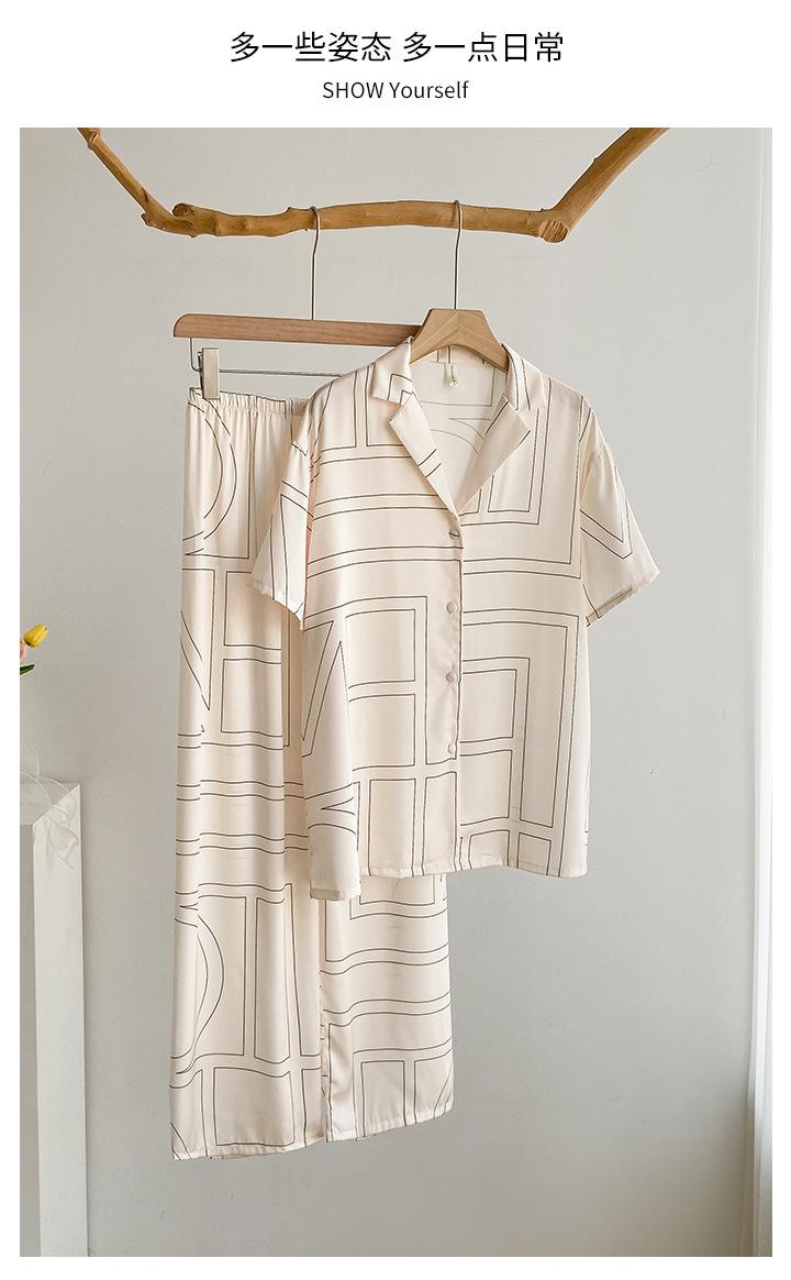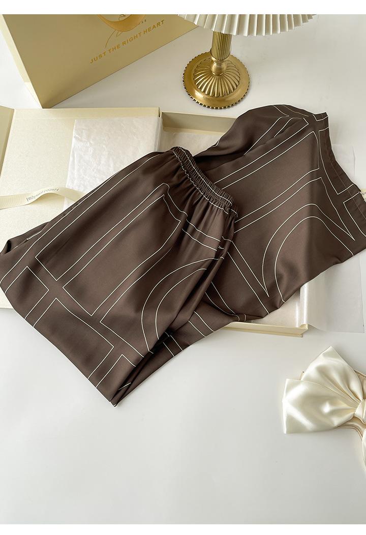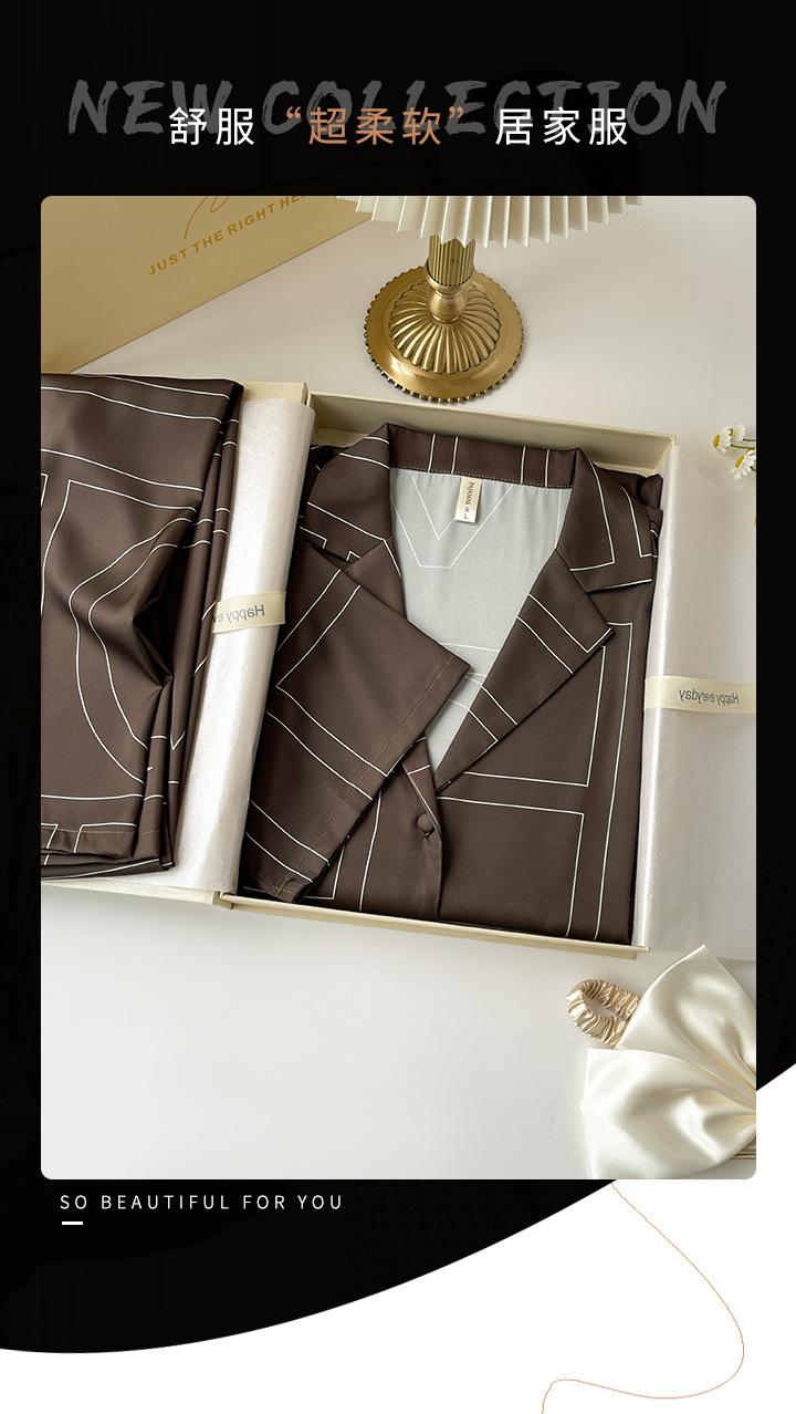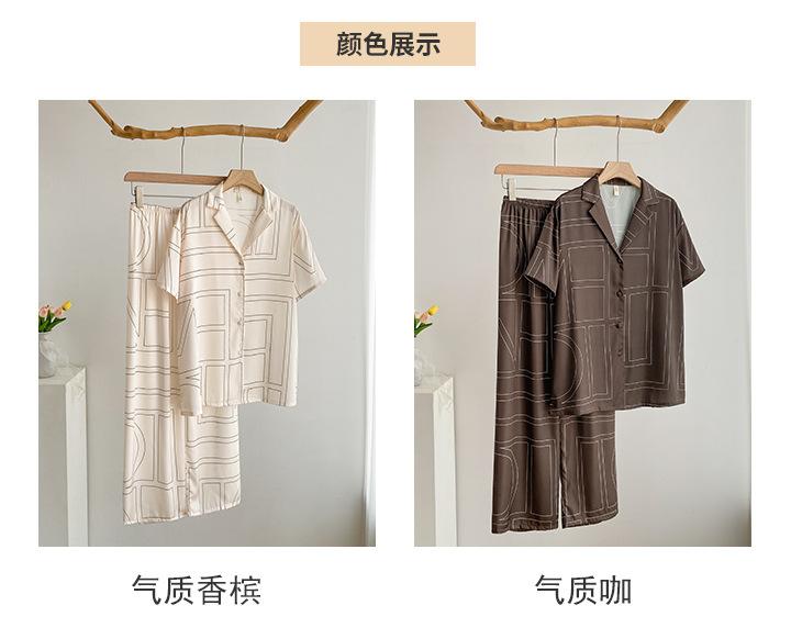 Pijama de verano para mujer, holgado, de alta gama, de seda helada, cárdigan de manga larga, ligero, de lujo, con estampado, ropa para el hogar.
