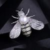 Broche de metal con forma de abeja, escarabajo, perla de cristal, joyería de insectos, venta al por mayor
