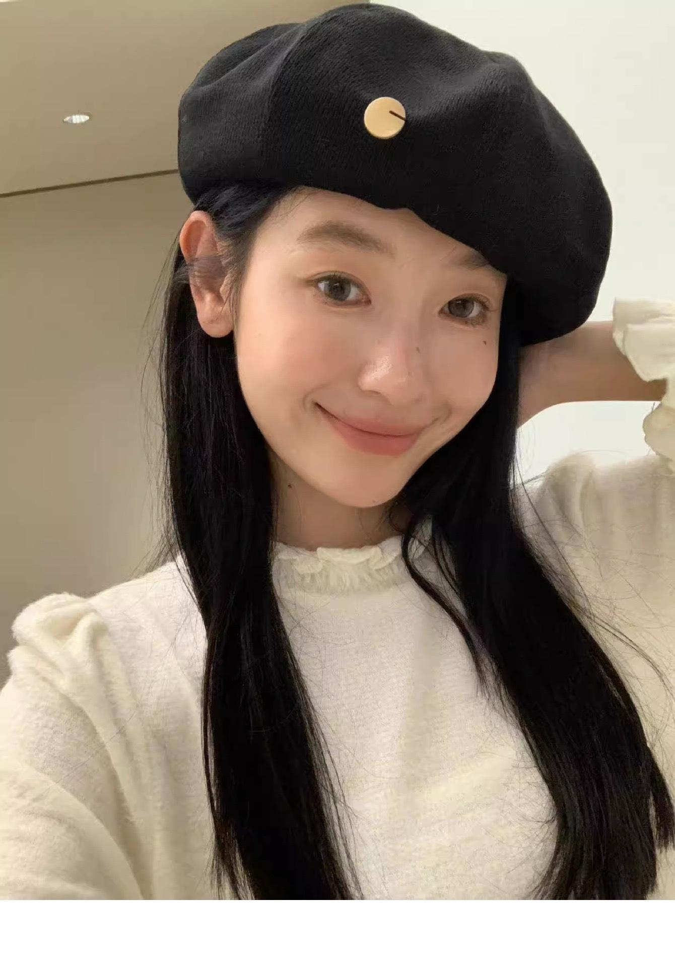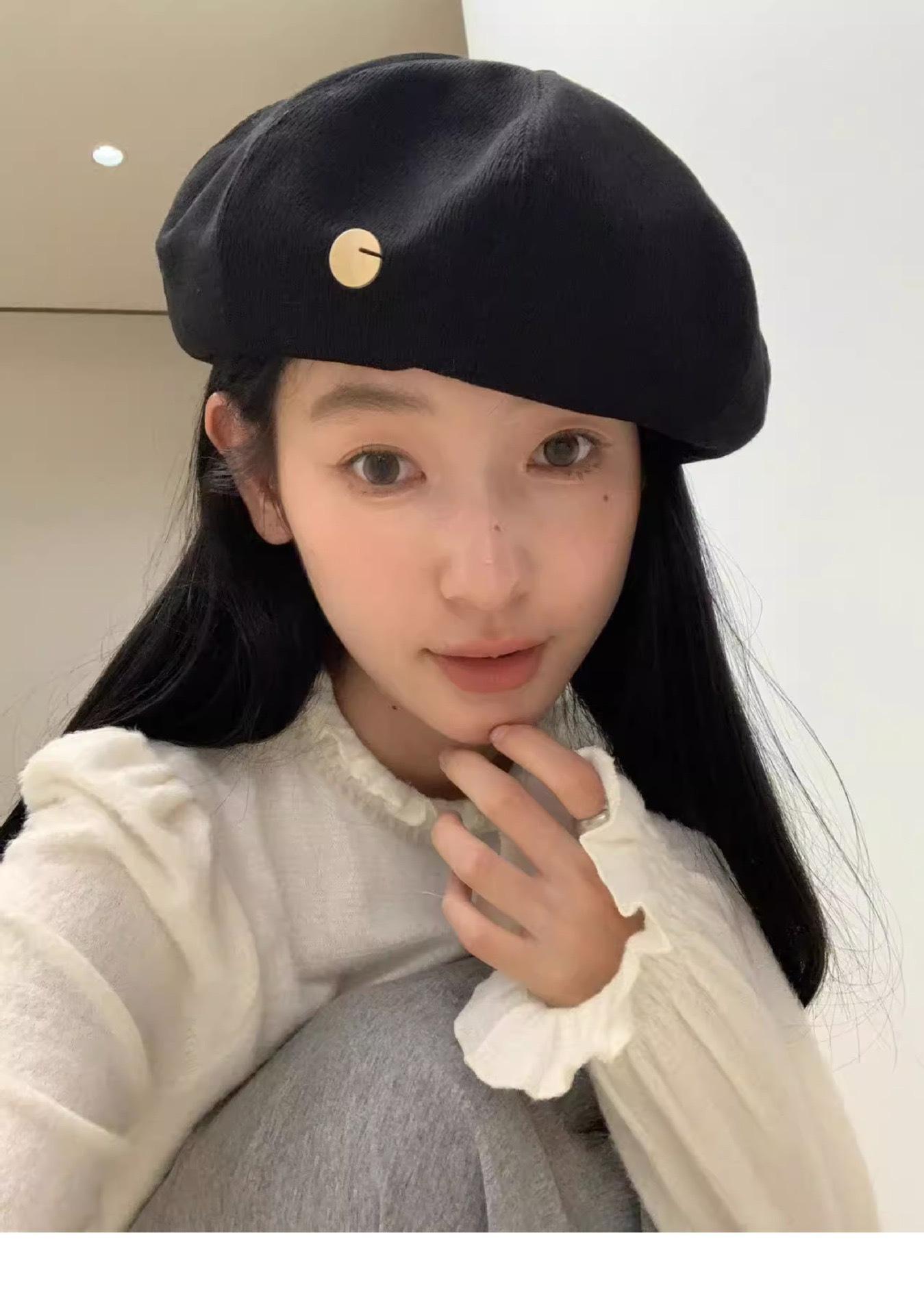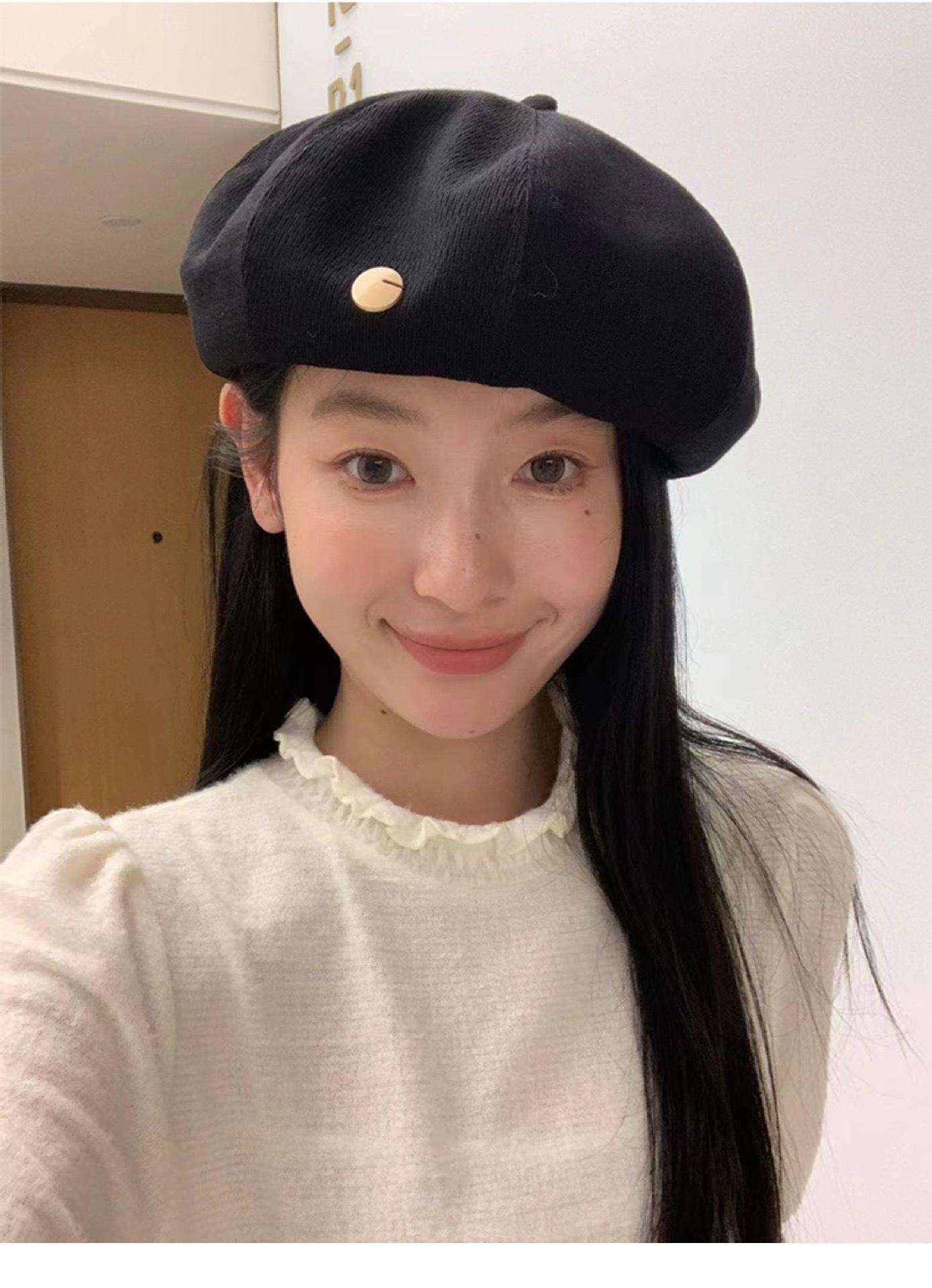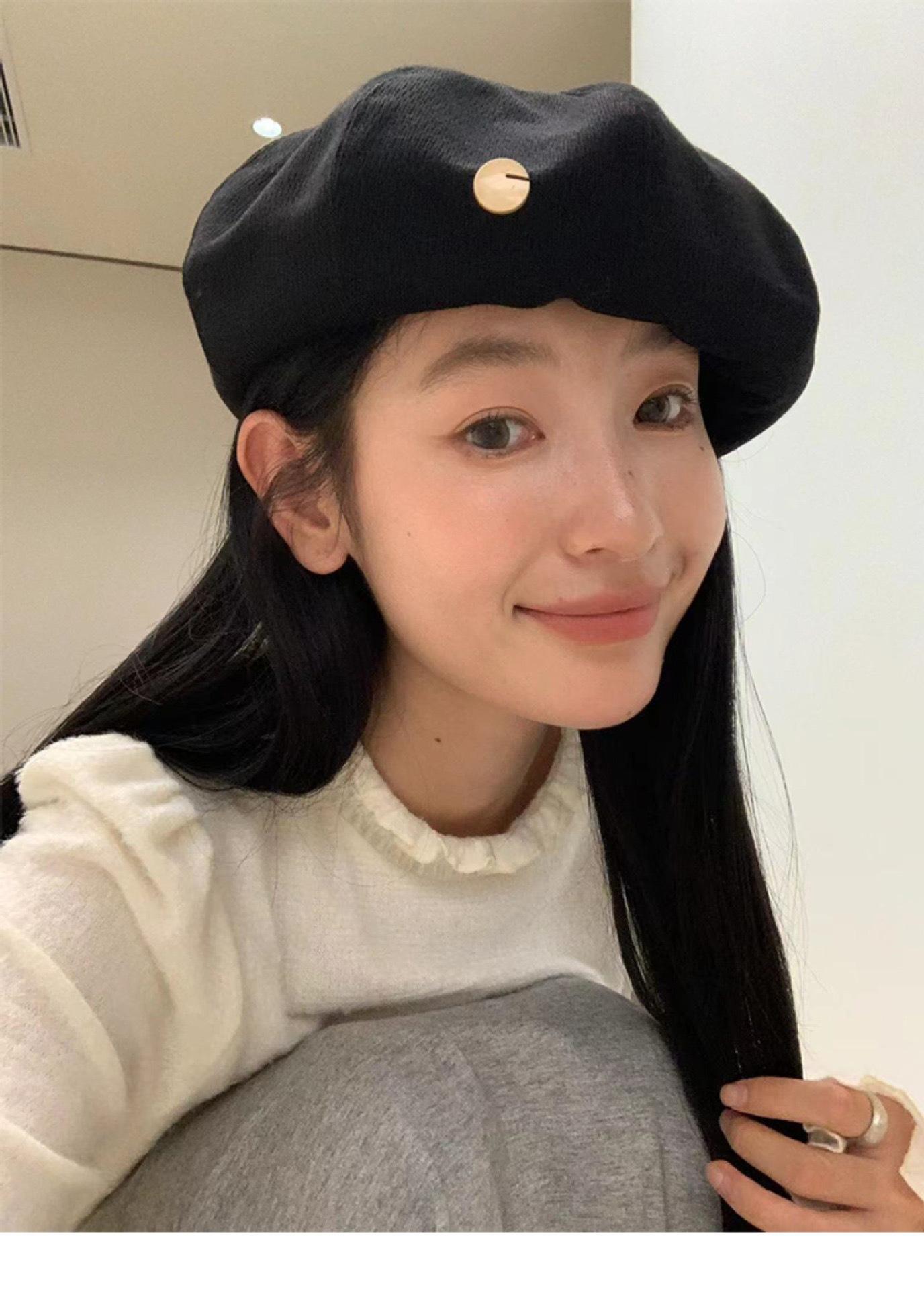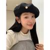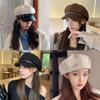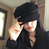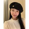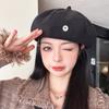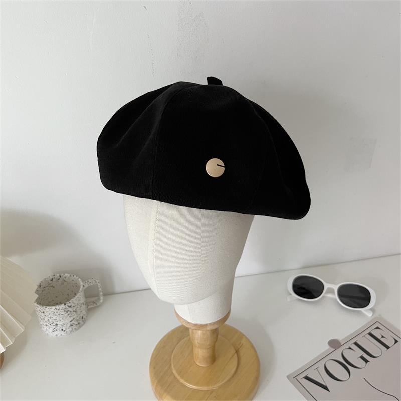 Boina negra con gran circunferencia de la cabeza para mujer, primavera y otoño 2023, nuevo sombrero octogonal pequeño de estilo coreano con combinación retro