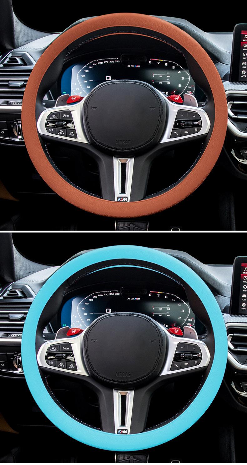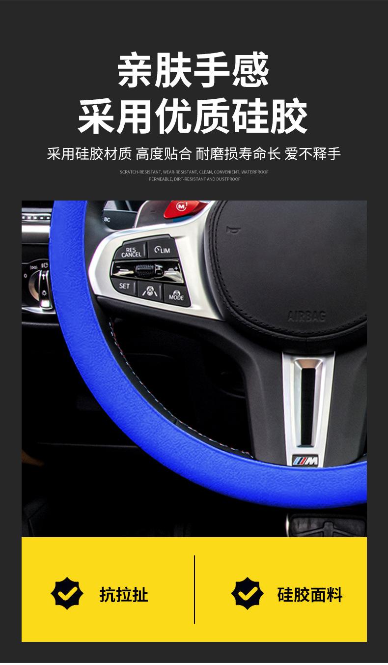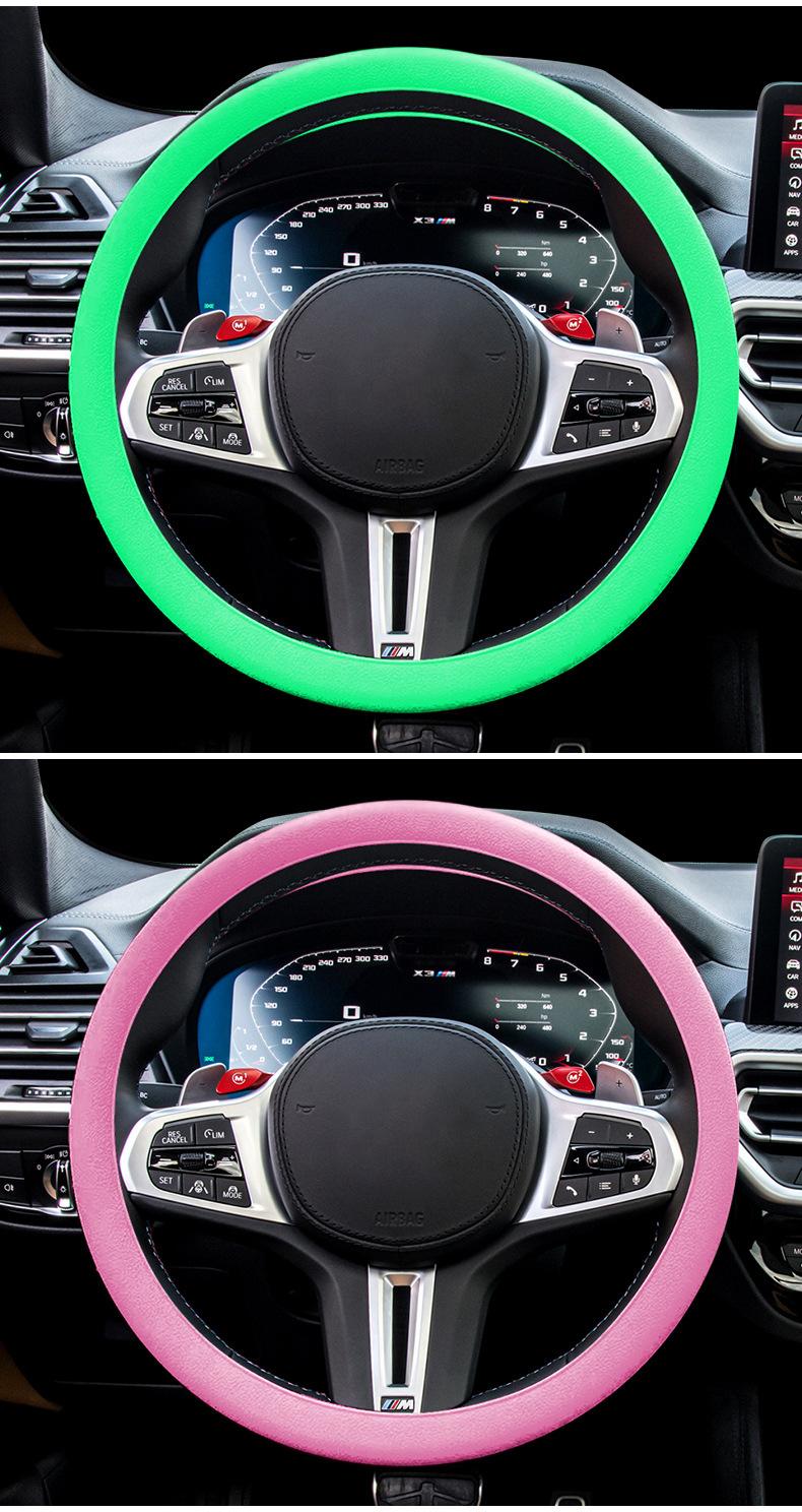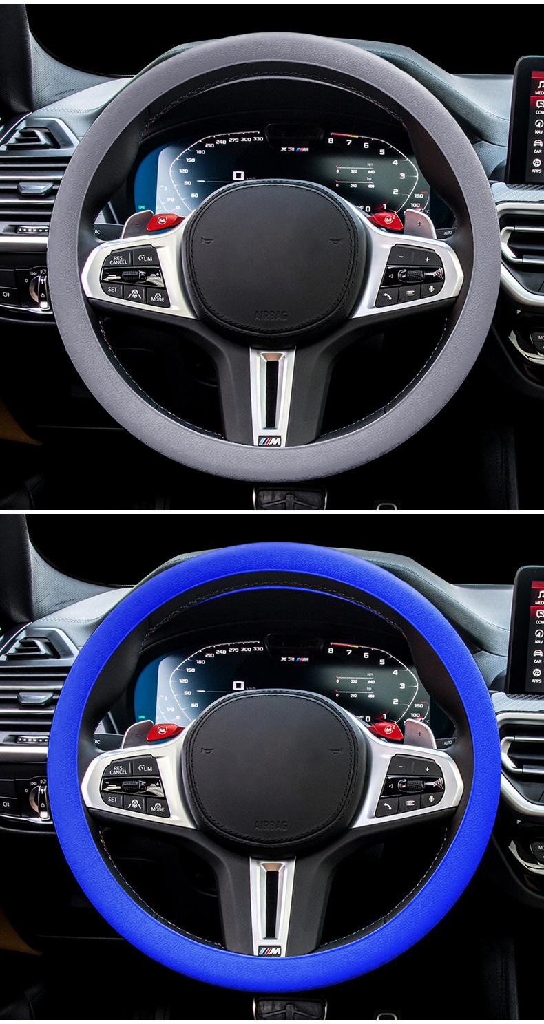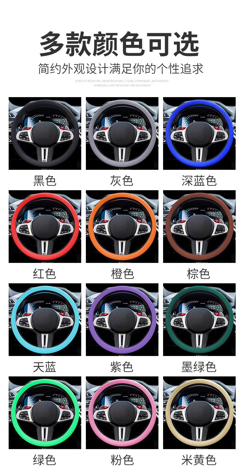 Funda de silicona para volante de coche, universal, redonda, en forma de D, para las cuatro estaciones, a la moda, absorbente del sudor, antideslizante, transpirable, suave y resistente al desgaste.