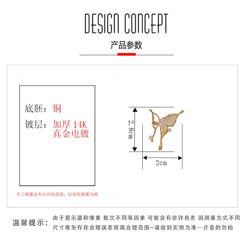 Gold single-zircon butterfly ear bone clip (thick gold plating), silver single-zircon butterfly ear bone clip ...