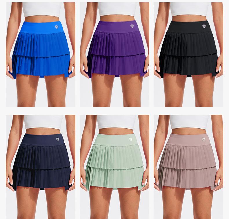 Falda corta deportiva de dos piezas para correr, de verano, para mujer, de secado rápido, para yoga, ligera, transpirable y anti-carrera, para tenis.