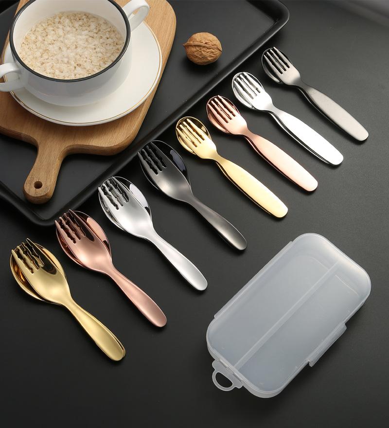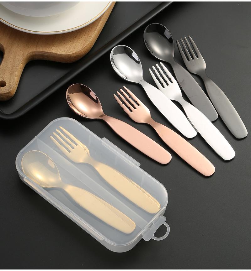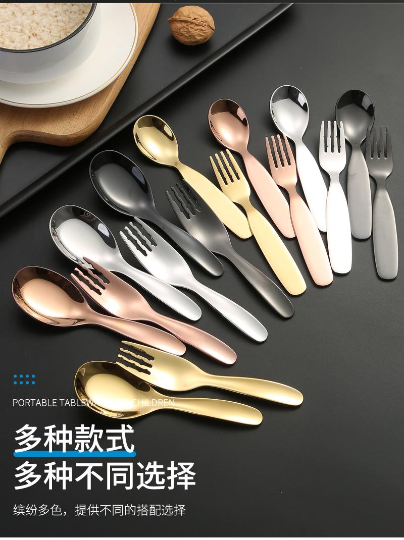 Cuchara tenedor para niños de acero inoxidable 316, vajilla adecuada para suplementos alimenticios para bebés, cuchara para el hogar, cuchara para comer, cuchara corta, tenedor