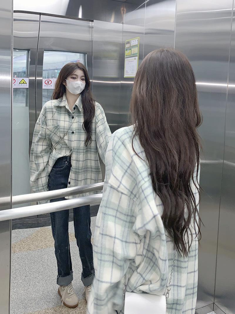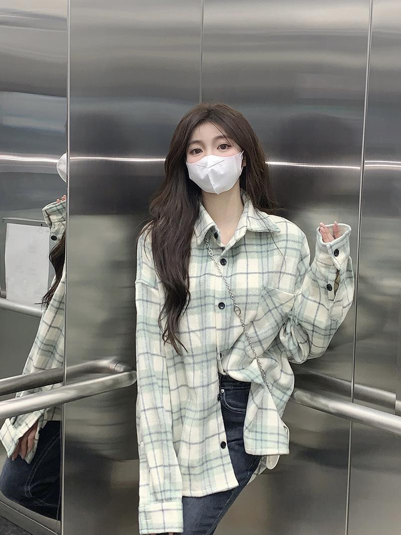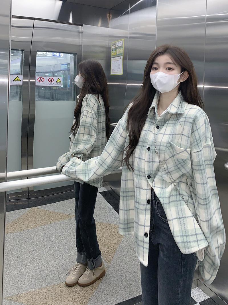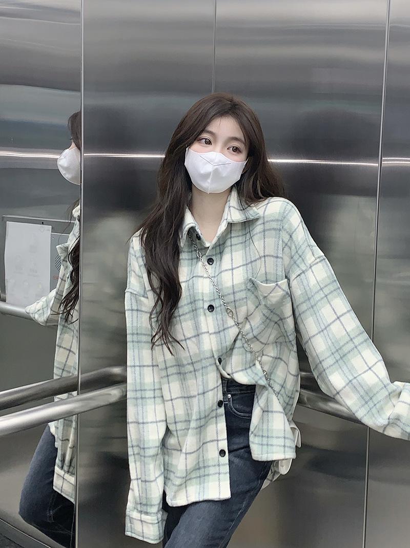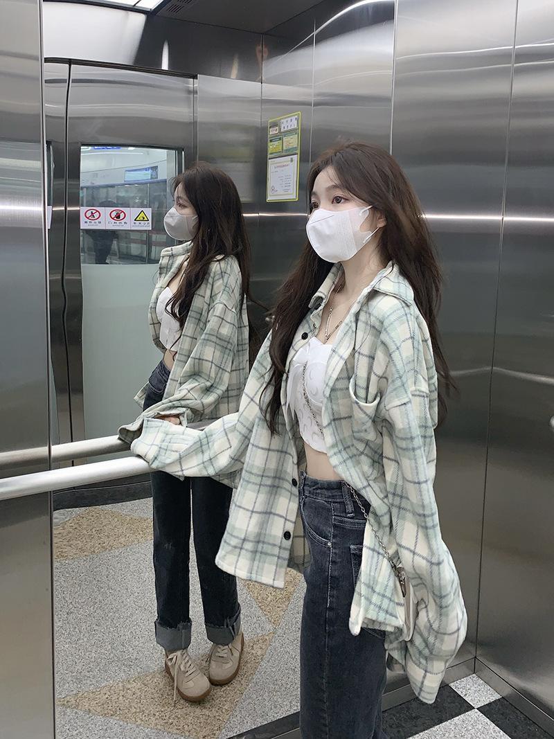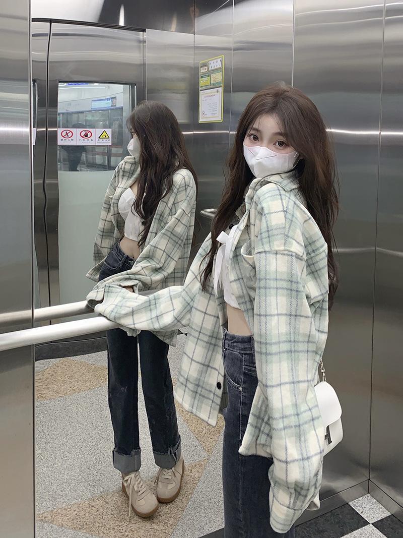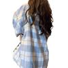 Camisa a cuadros con lijado para mujer, estilo Hong Kong, para parejas, de manga larga, para estudiantes, primavera y otoño