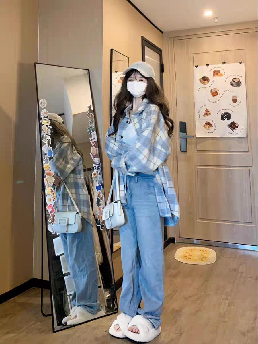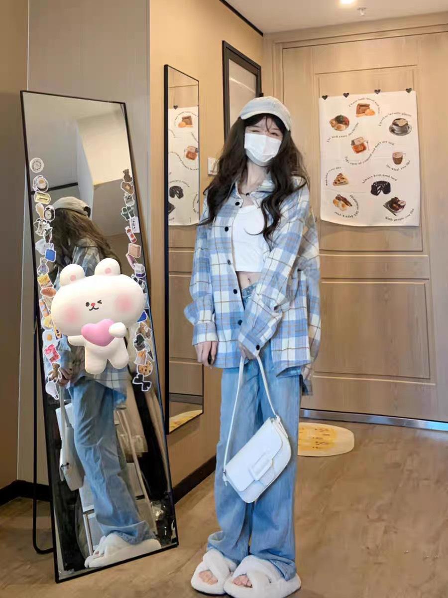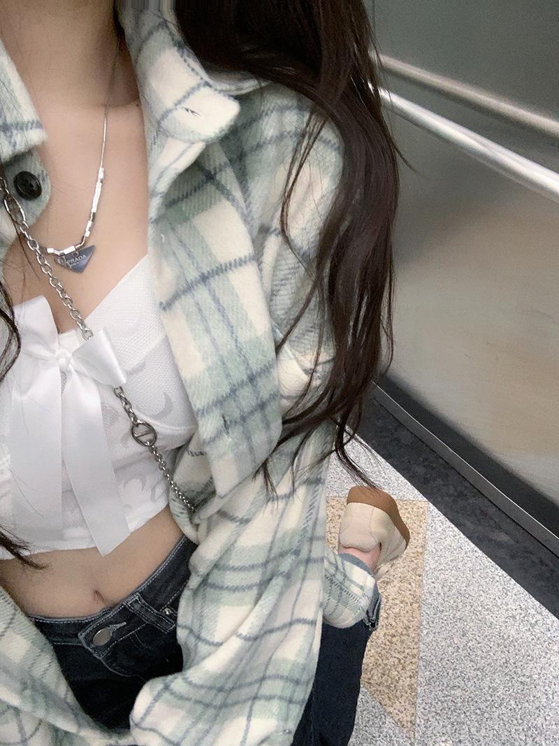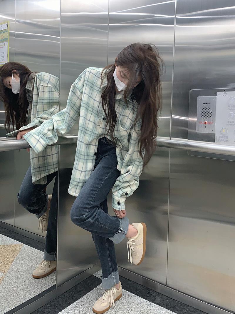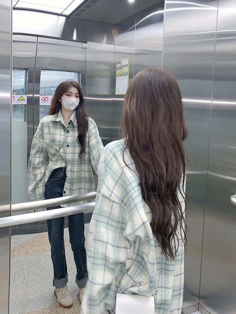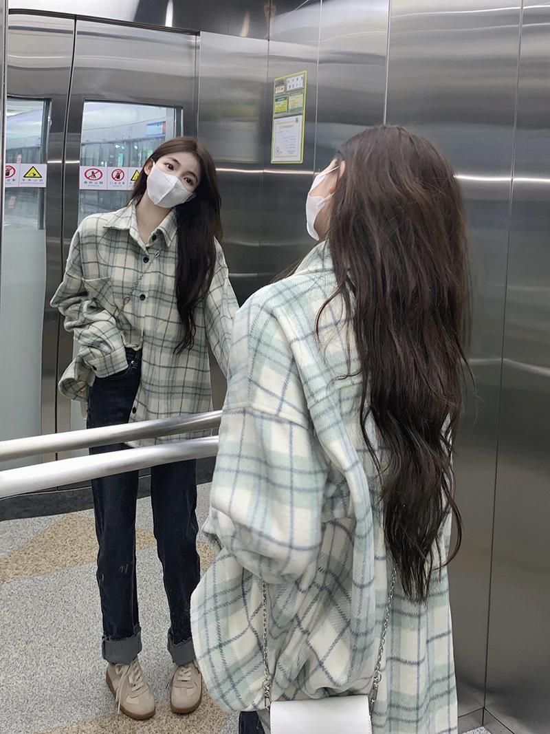 Camisa a cuadros con lijado para mujer, estilo Hong Kong, para parejas, de manga larga, para estudiantes, primavera y otoño