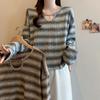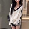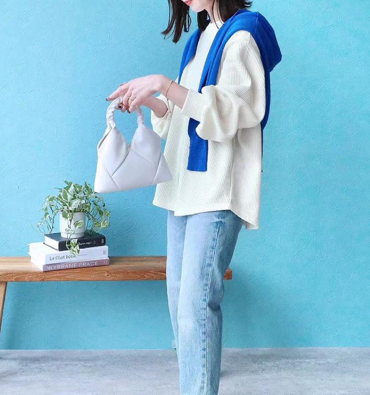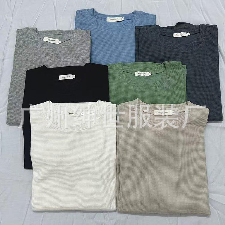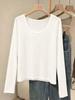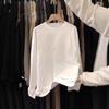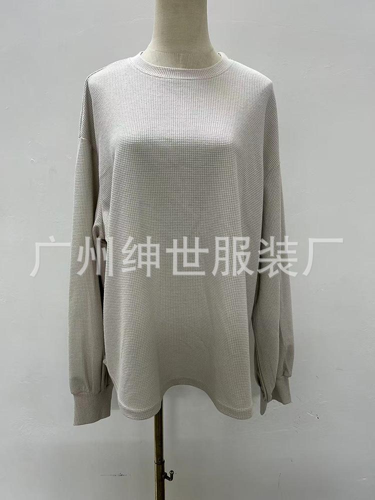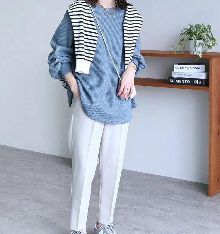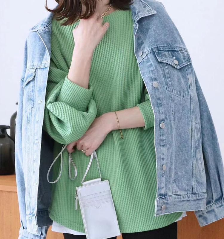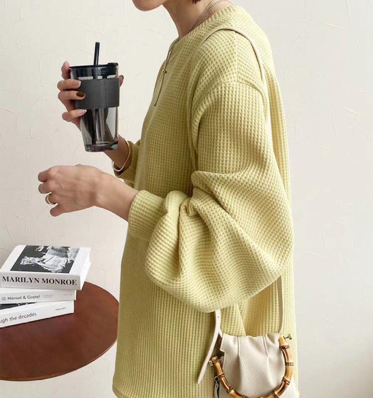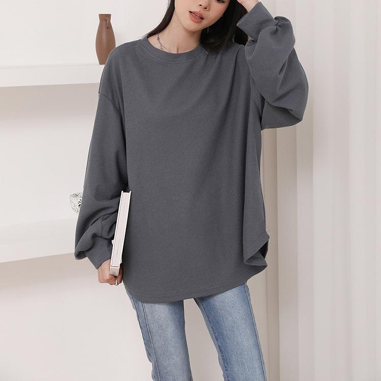 Otoño Nueva Camiseta de Mujer Holgada Casual de Gama Alta Nido de Abeja Nicho Color Sólido Adelgazante Cuello Redondo Camiseta Básica Manga Larga