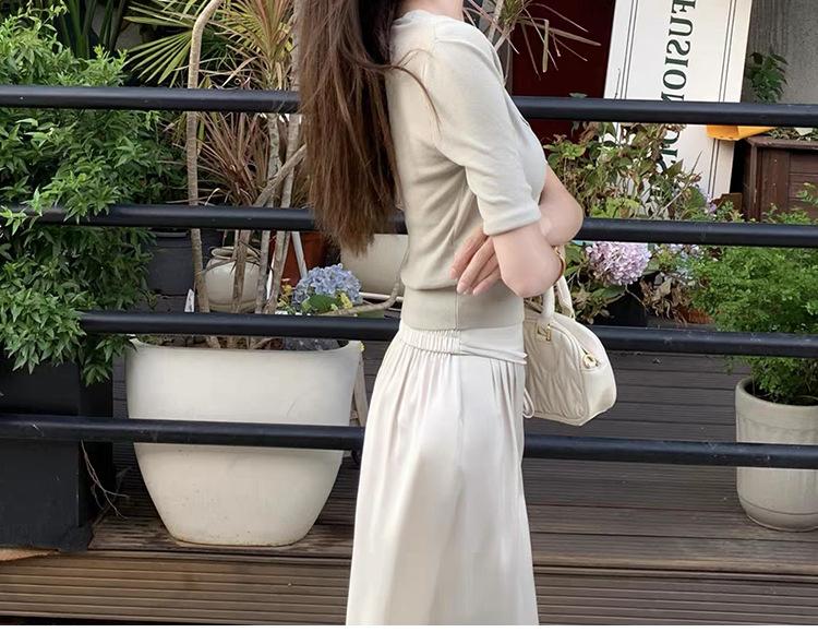 Las elegantes mangas de largo medio cubren la carne feliz de los brazos, lo que no solo realza el temperamento sino que también reduce la sensación de volumen de la parte superior del cuerpo.