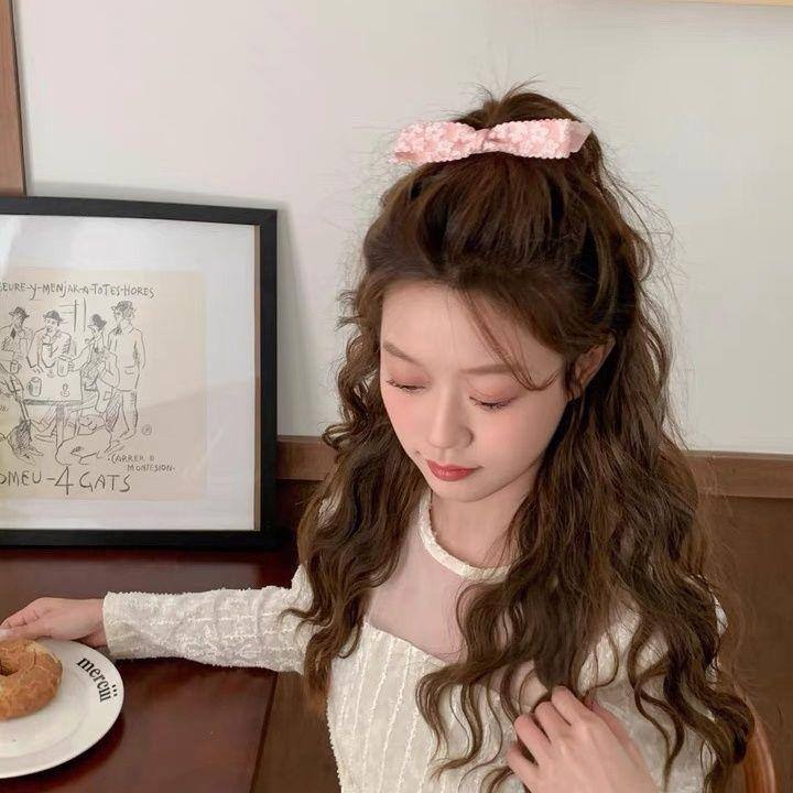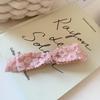 Horquilla con lazo de flores rosas para otoño e invierno, accesorios para el cabello con clip lateral en la parte posterior, linda horquilla con clip superior de princesa.