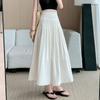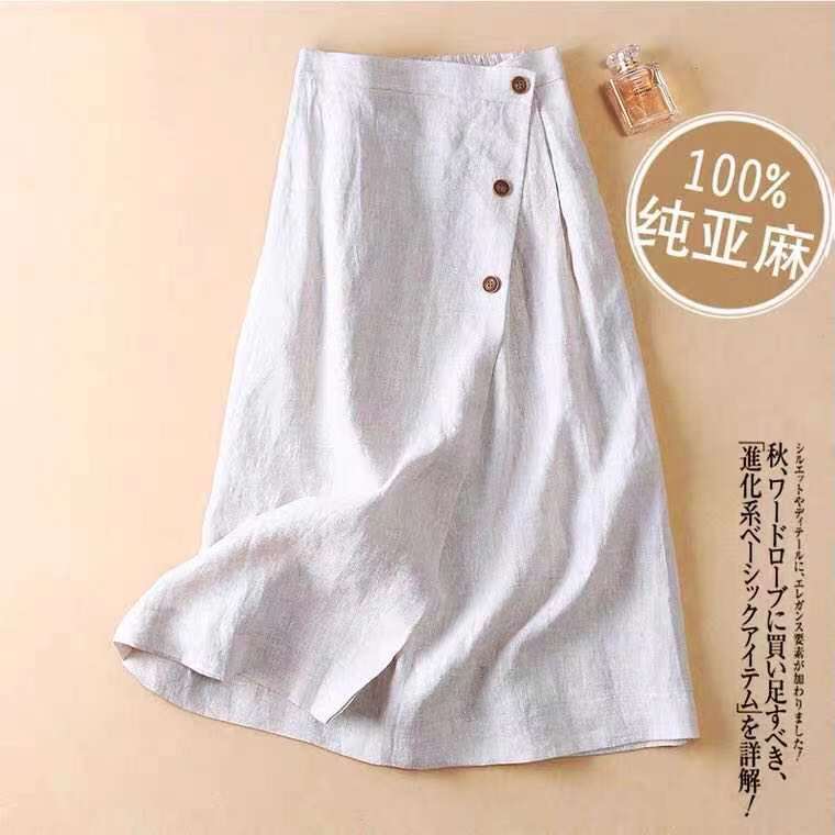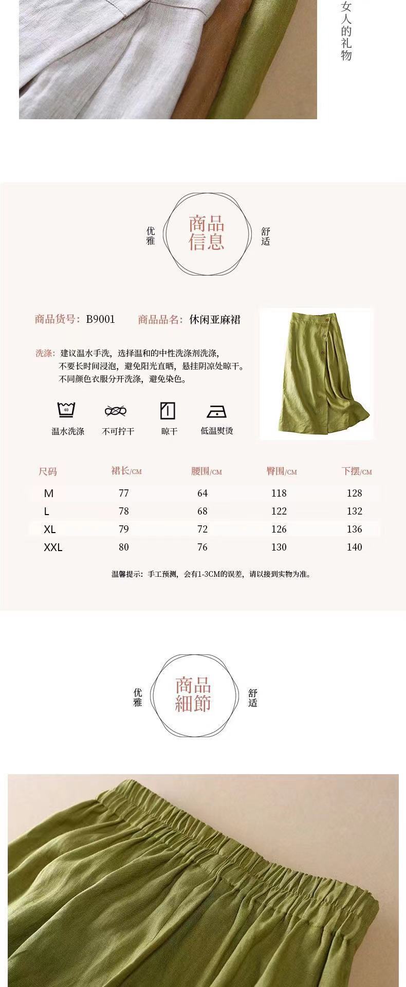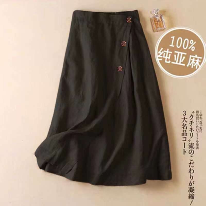 Falda Casual de Verano Nueva Transfronteriza 2025 Falda de Algodón y Lino de Largo Medio con Cintura Elástica y Bajo Amplio para Mujer