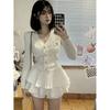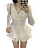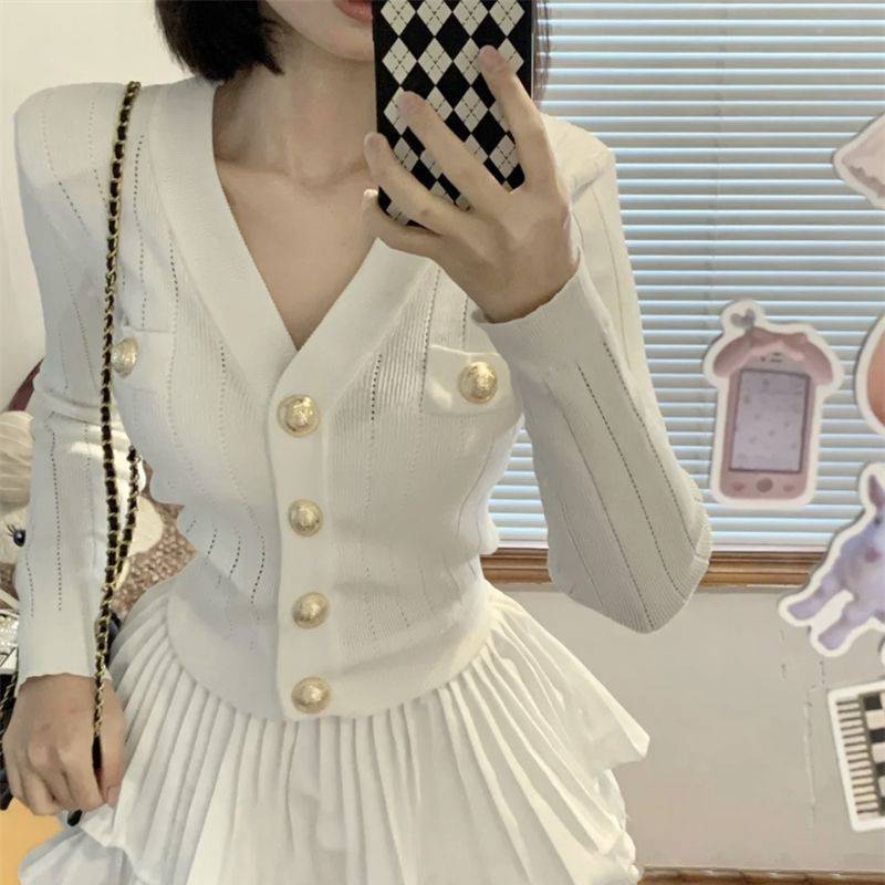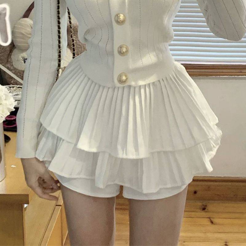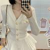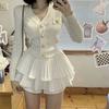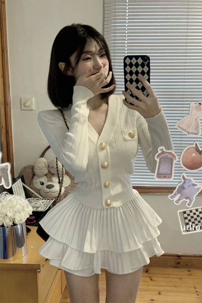 White# knitted cardigan + cake skirt [suit]]