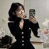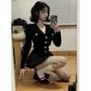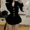 Black# knitted cardigan + cake skirt [suit]]