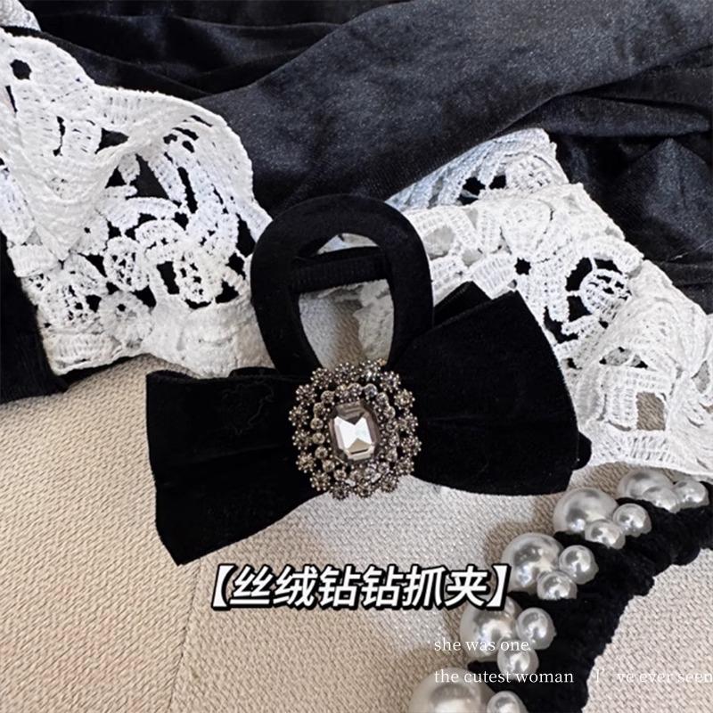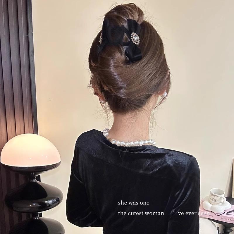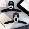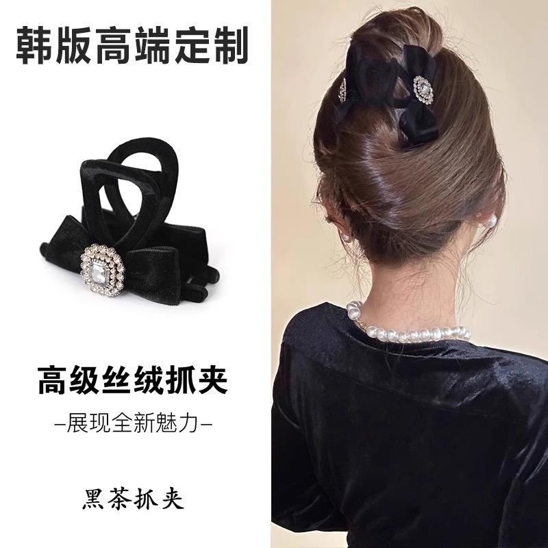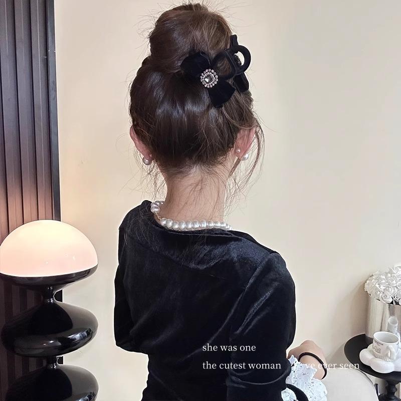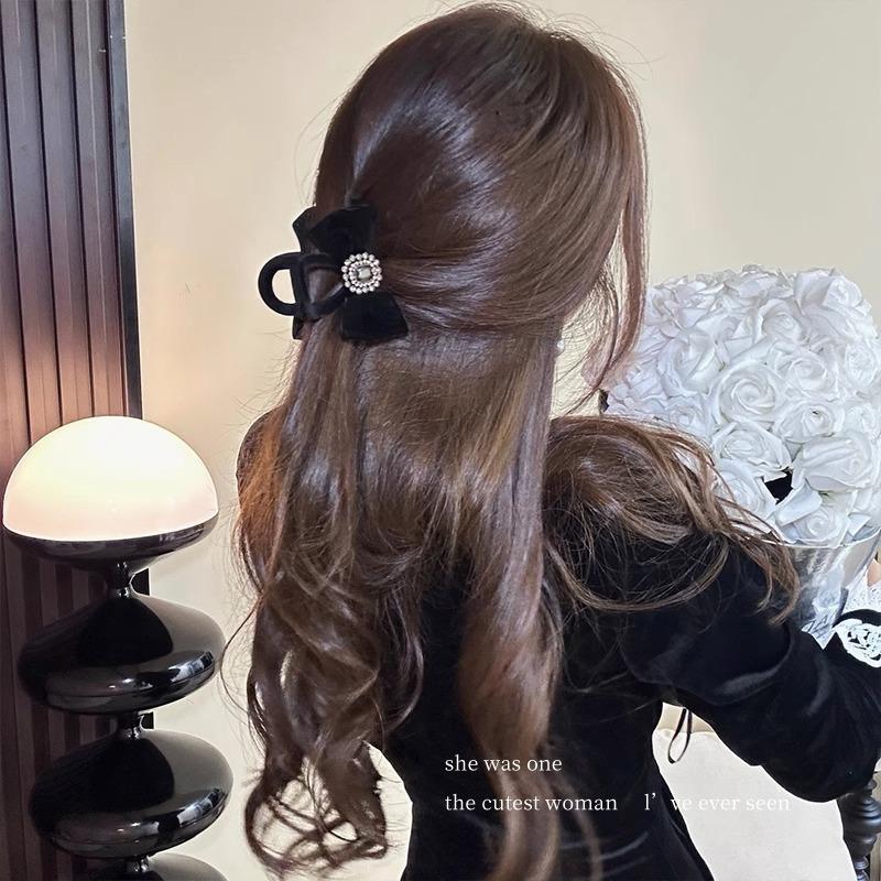 2023 nuevo otoño e invierno negro pinza flocado de alta gama espalda media cabeza pedrería clip para el cabello adorno para la cabeza de tiburón para mujer