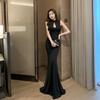 Vestido largo sexy, ajustado, adelgazante, sin mangas, elegante, de celebridad, con corte en la cadera, para banquetes, brindis y noche.