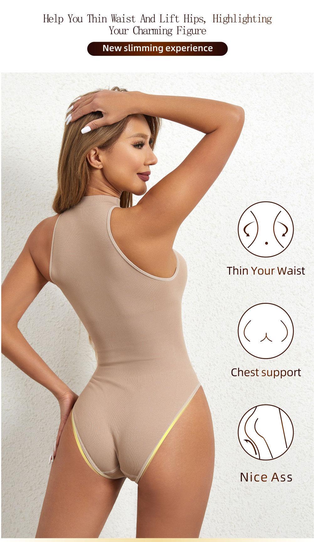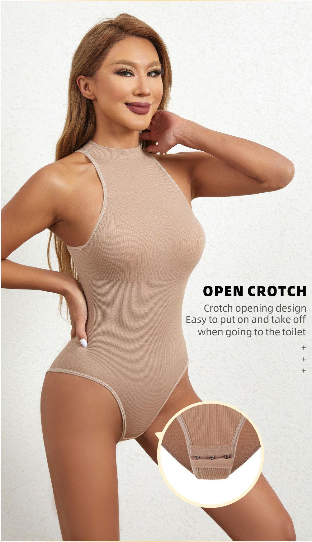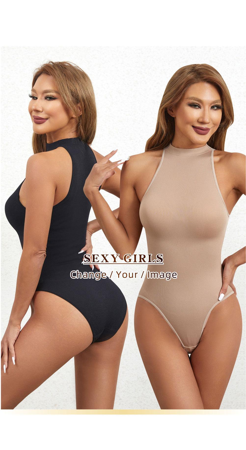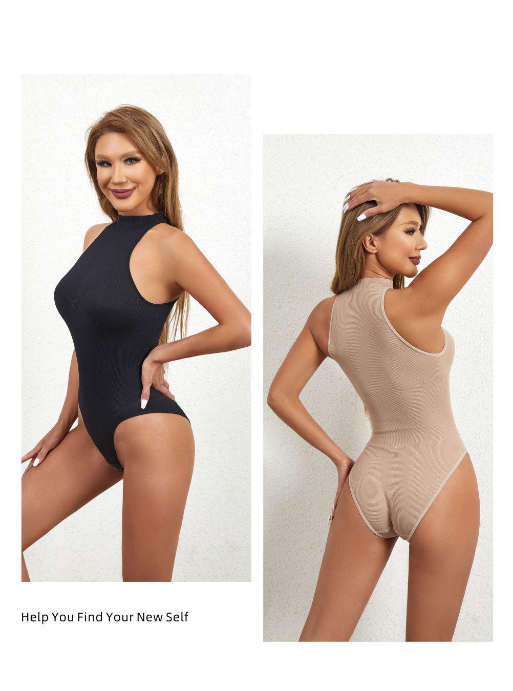Nuevo enterizo de mujer transfronterizo de cuello redondo sin mangas para exterior, para usar debajo, con botones, mallas, control de abdomen, modelador de cuerpo en forma de T