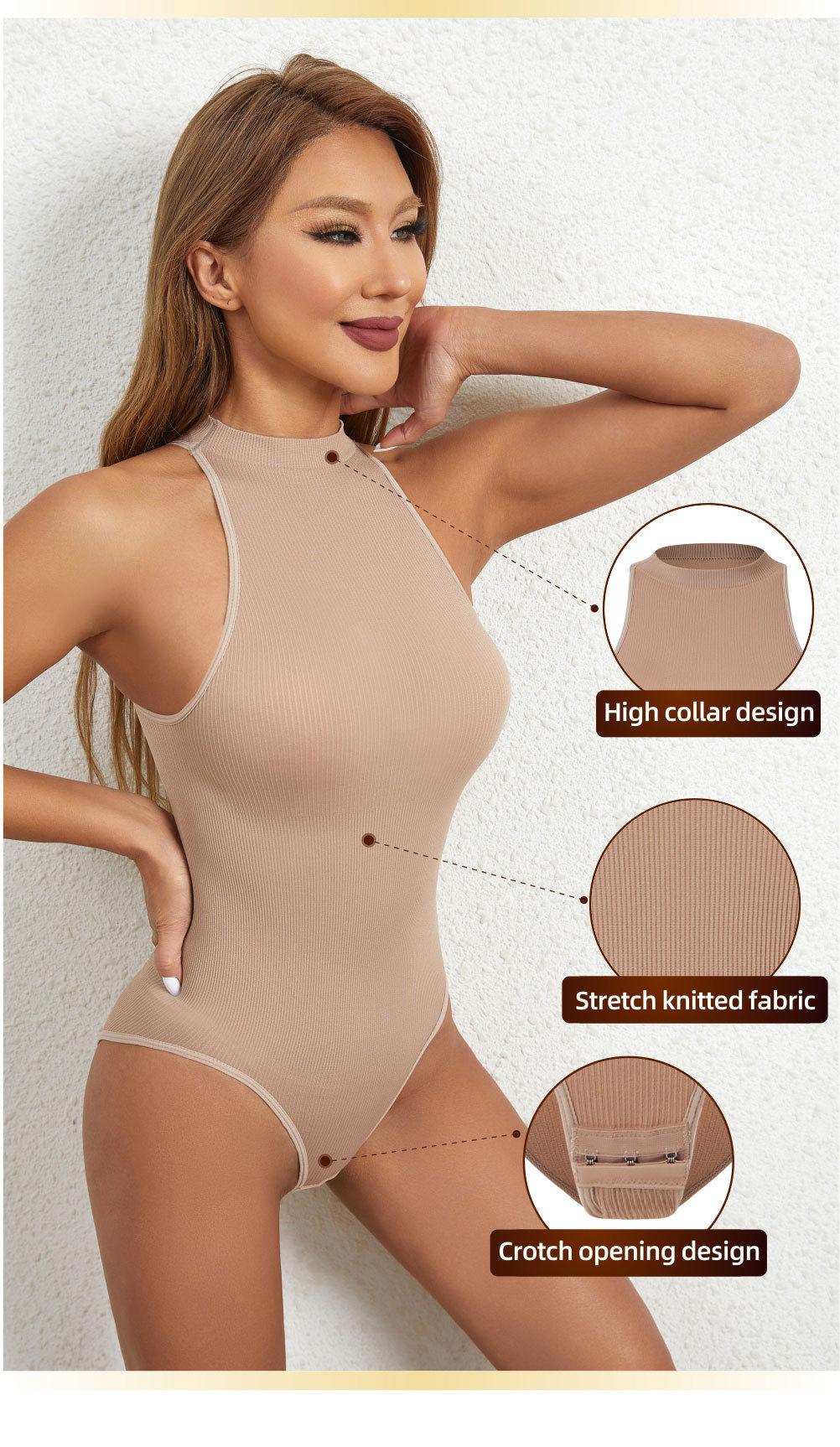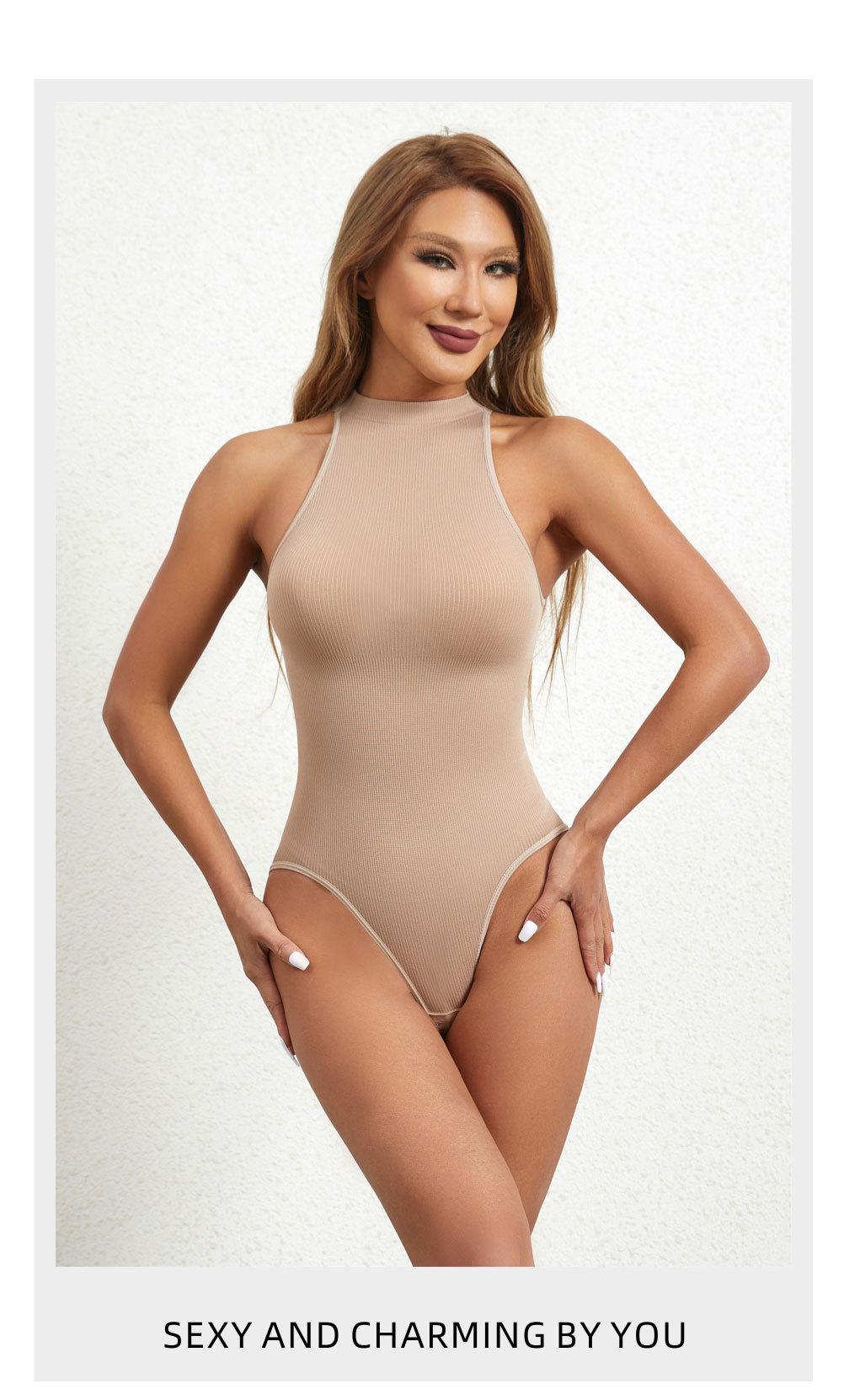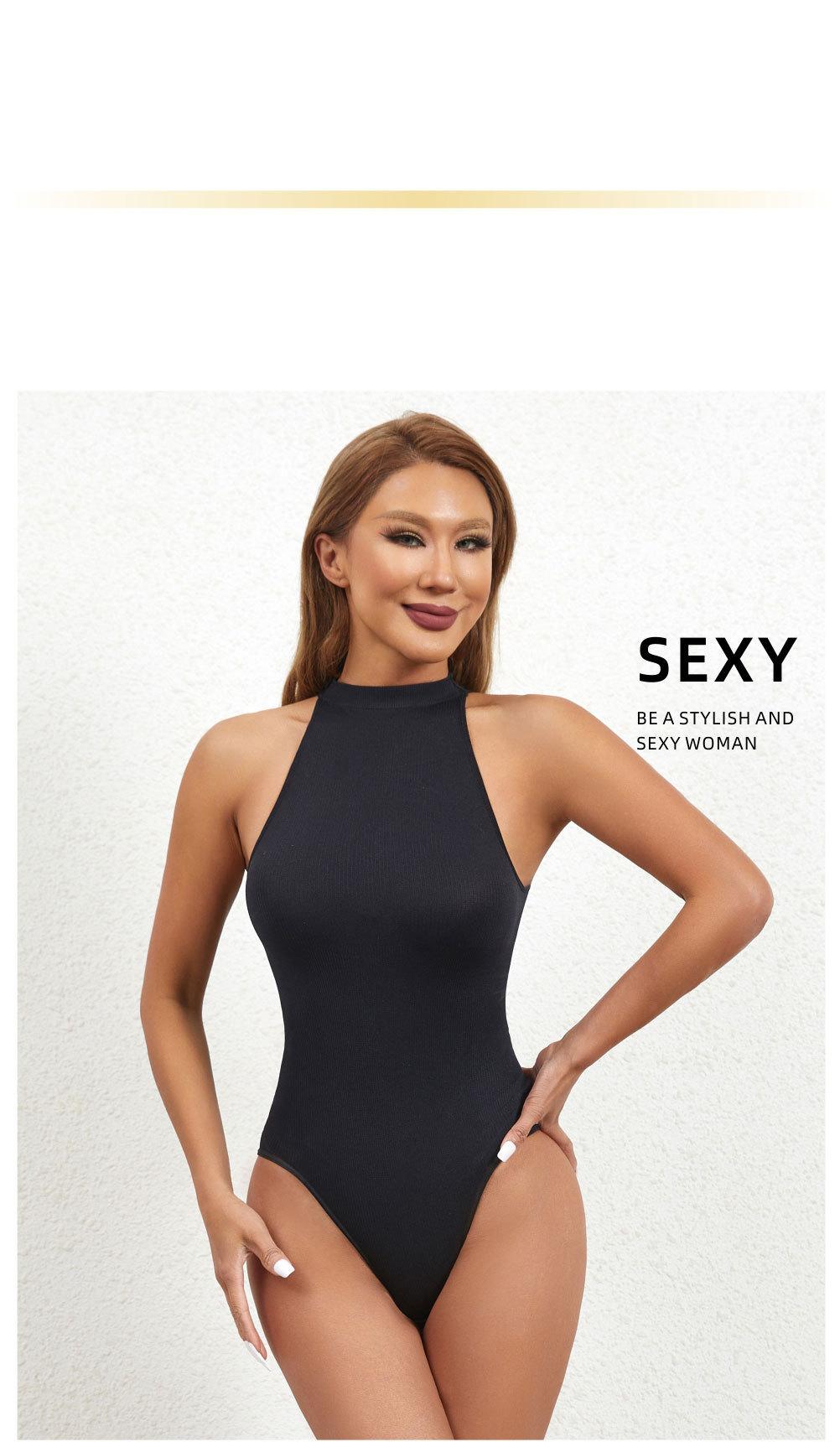 Mono de mujer transfronterizo con cuello redondo, sin mangas, con medias ajustadas y escote en T, corsé en forma de T