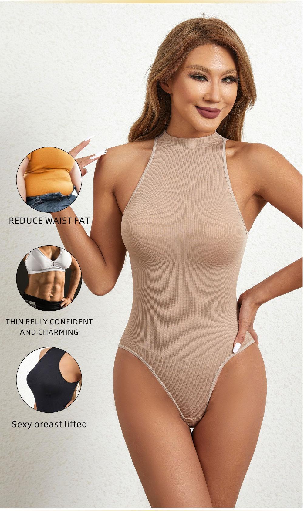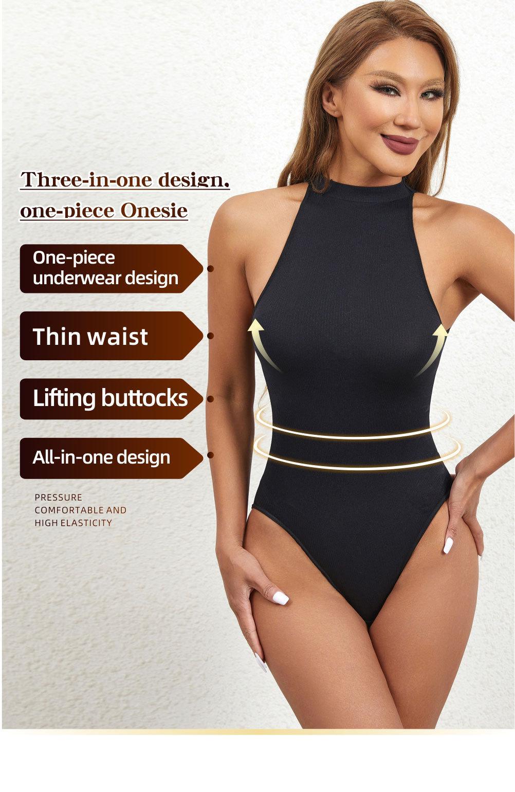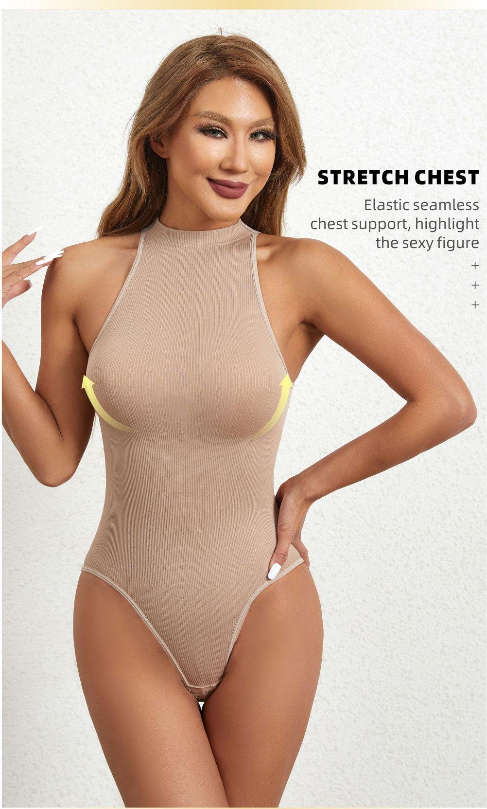 Mono de mujer transfronterizo con cuello redondo, sin mangas, con medias ajustadas y escote en T, corsé en forma de T