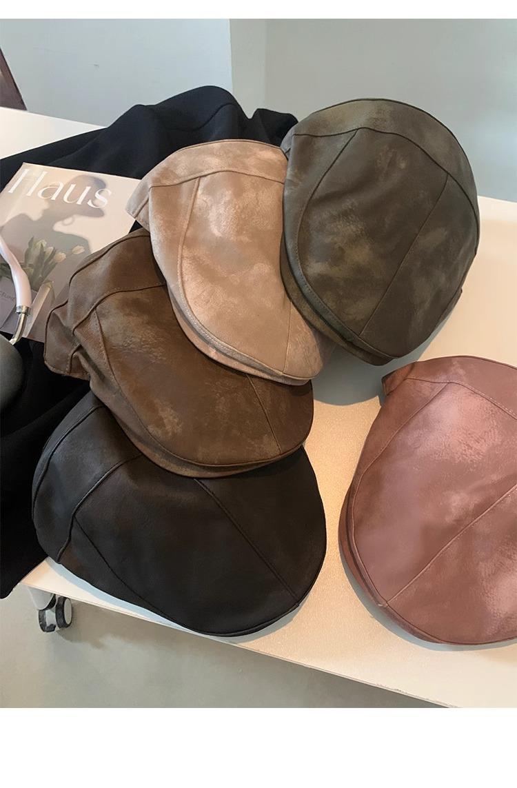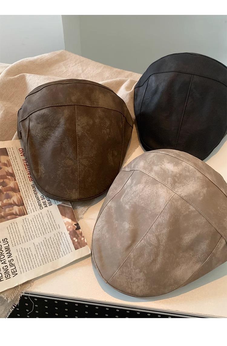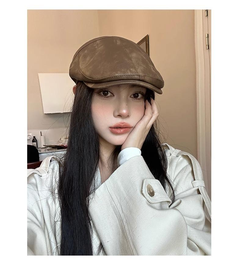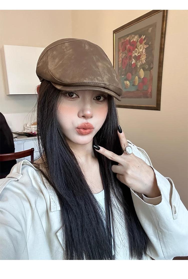 Boina Retro Estilo Americano Calle Chica Caliente PU Verano Fina Color Sólido Casual Combinable Muestra la Cara Pequeño Sombrero Hacia Adelante