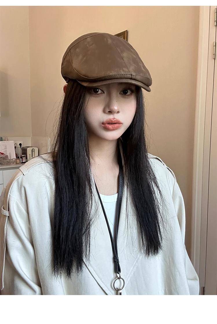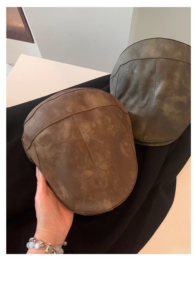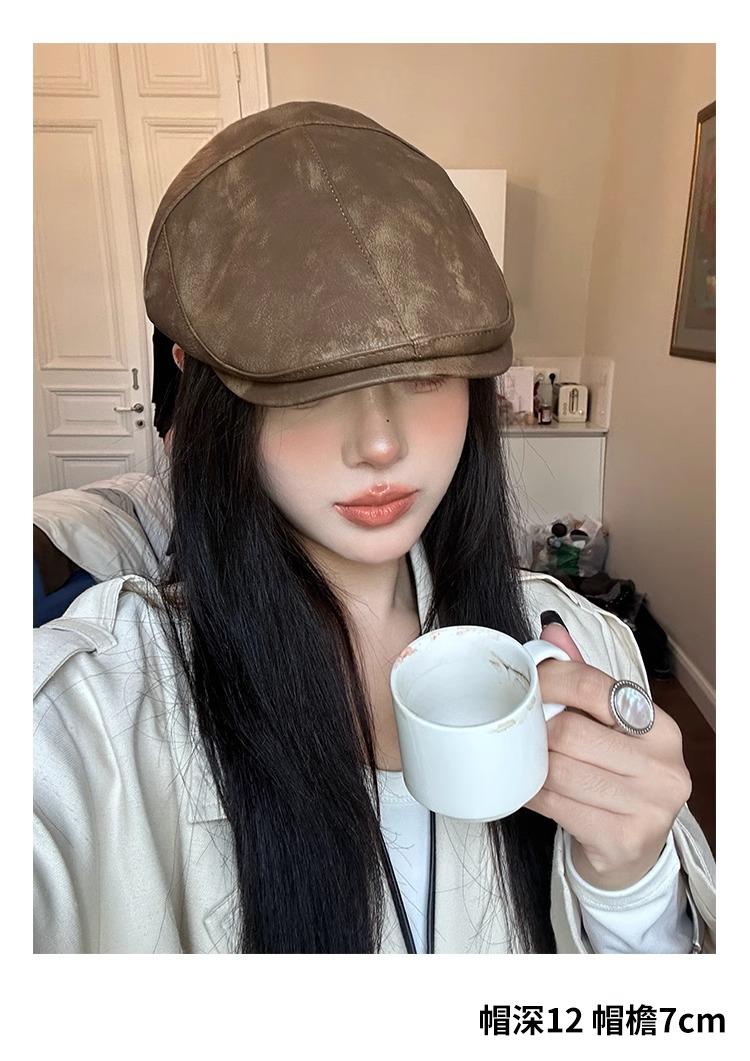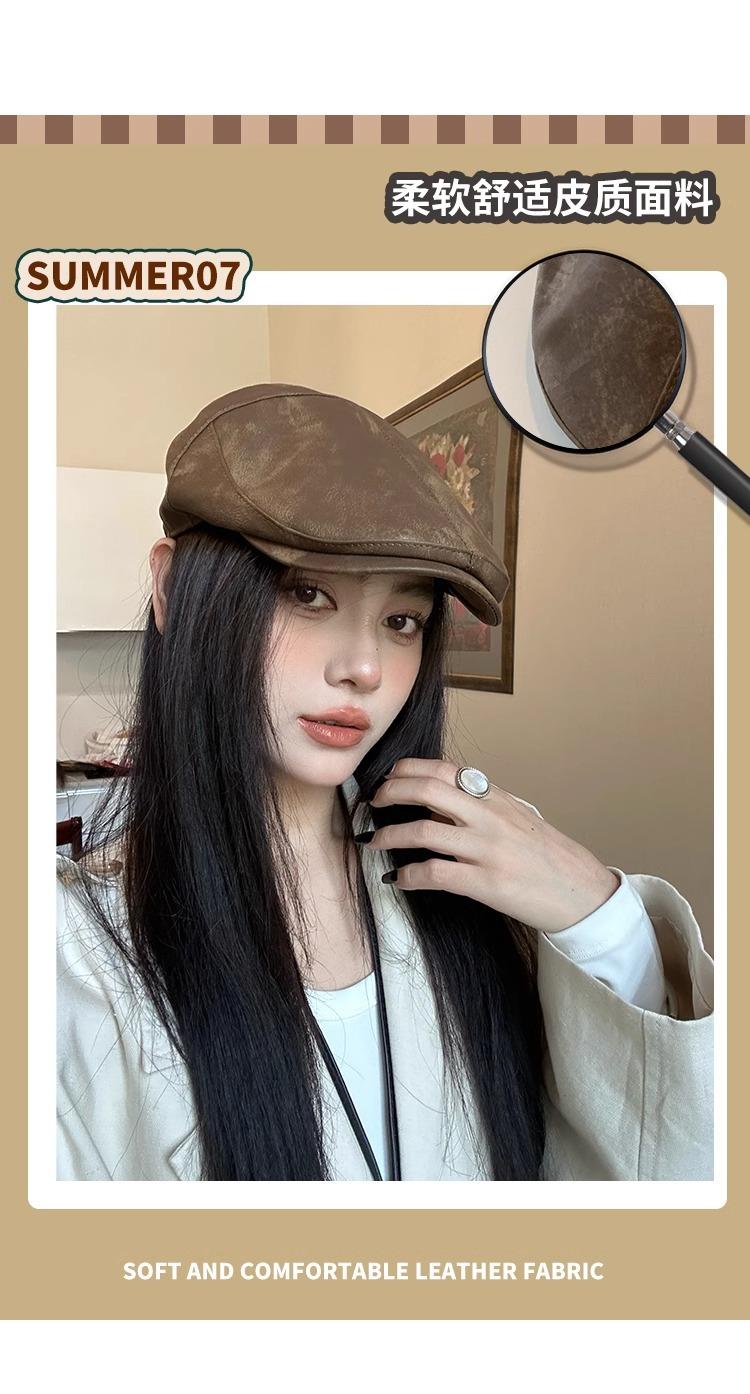 Boina Retro Estilo Americano Calle Chica Caliente PU Verano Fina Color Sólido Casual Combinable Muestra la Cara Pequeño Sombrero Hacia Adelante
