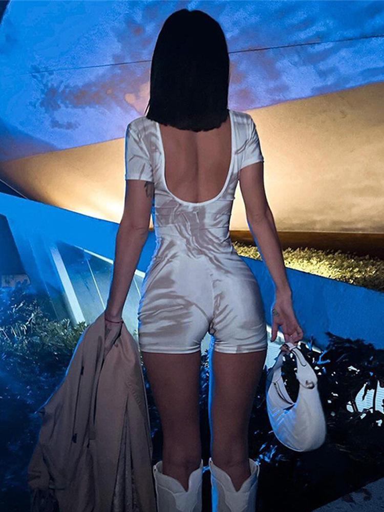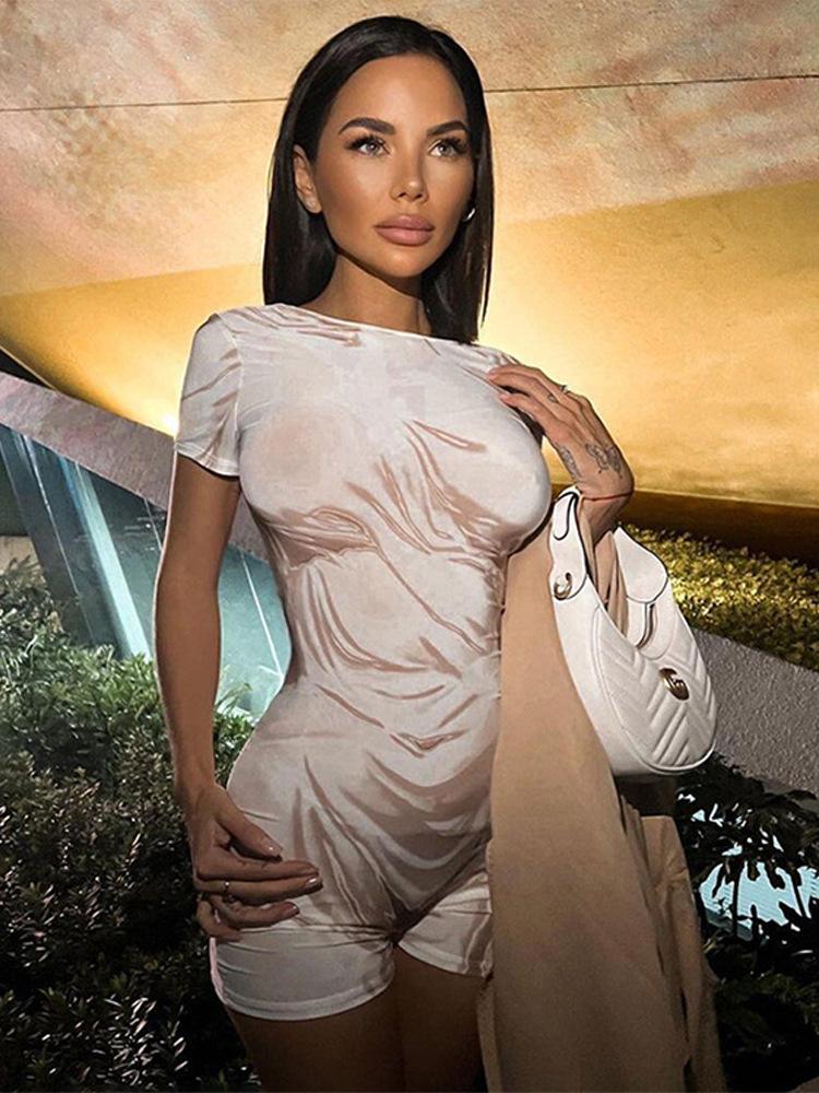 Estilo Europeo y Americano Verano Comercio Exterior Ropa de Mujer Y2K Nuevo Casual Calle Fotográfico Cuello Redondo Manga Corta Ajustado Shorts para Mujer