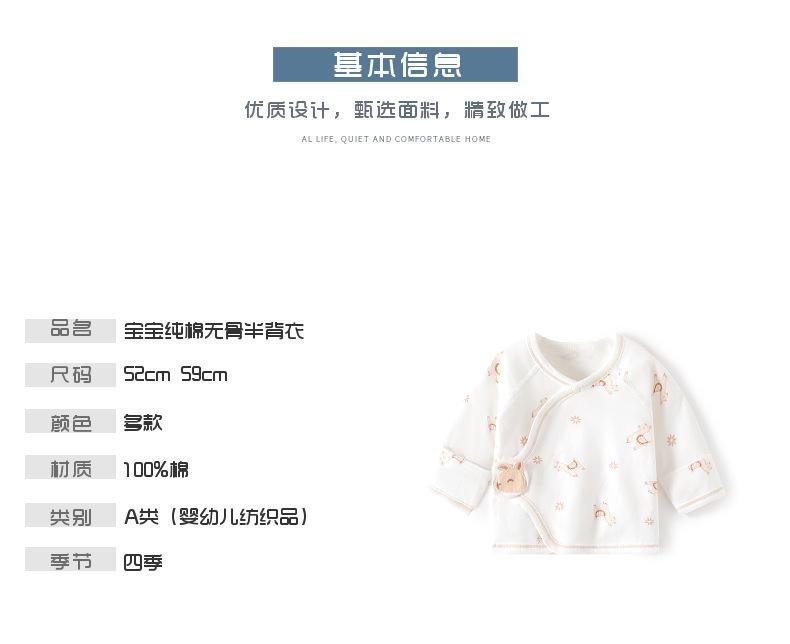 Ropa interior de media espalda para bebé recién nacido, sin huesos, de algodón, para primavera y otoño, para las cuatro estaciones, con velcro, para bebé