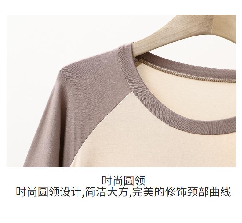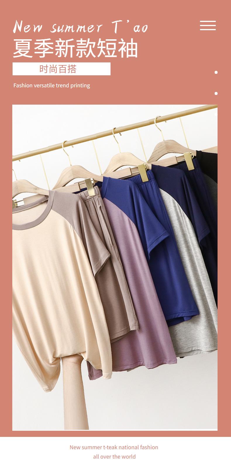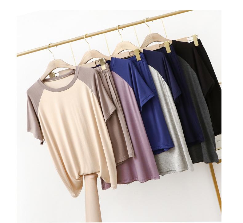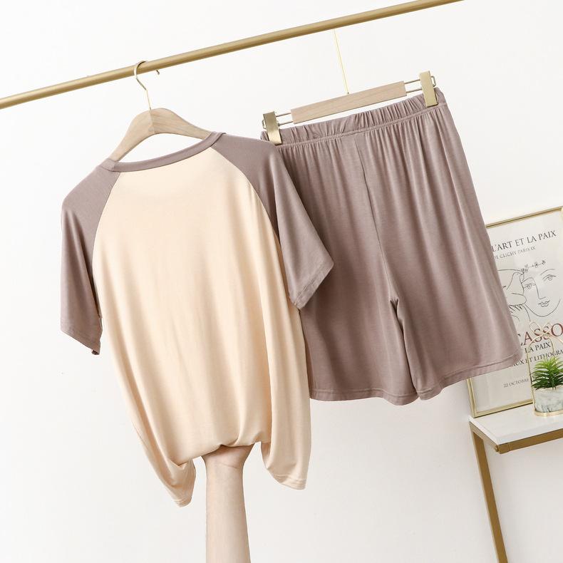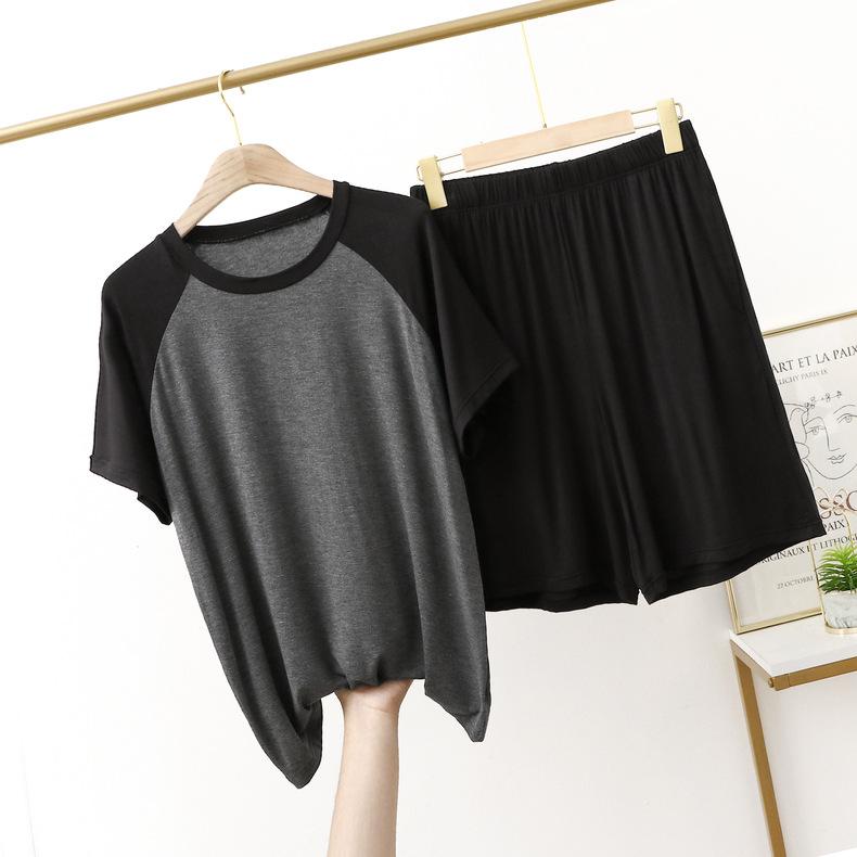 Conjunto de dos piezas de manga corta informal, fino y modal, para uso doméstico y exterior, para parejas, con bloques de color fino y bloques de color, talla grande