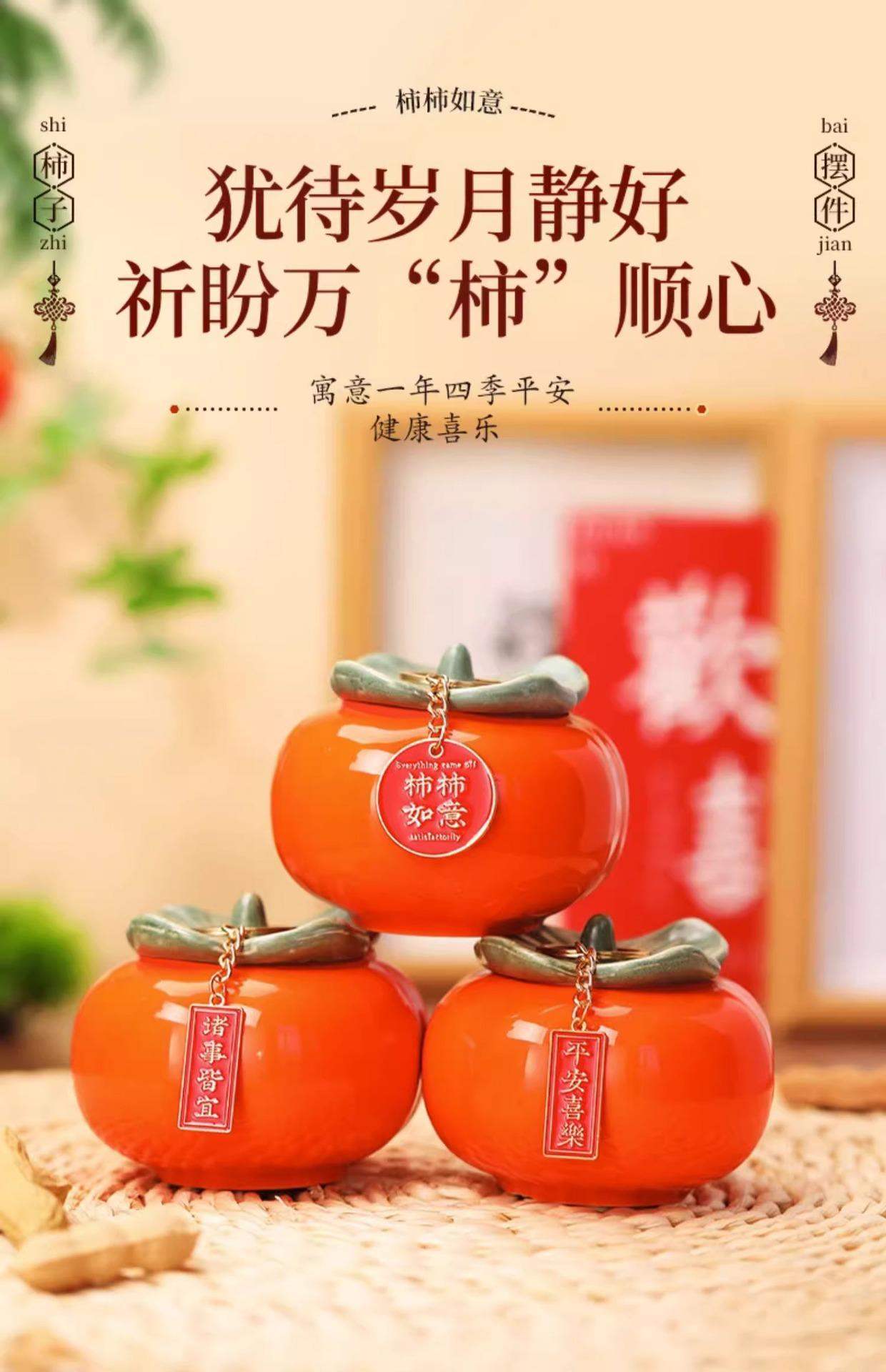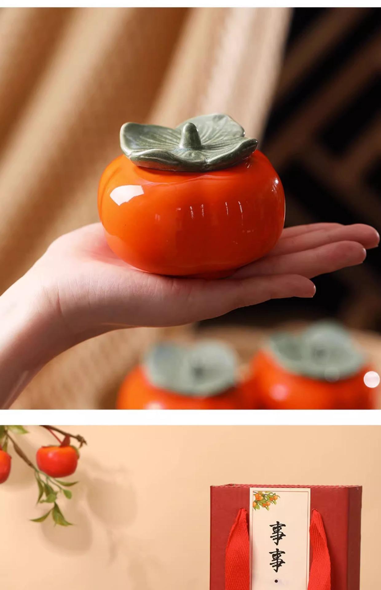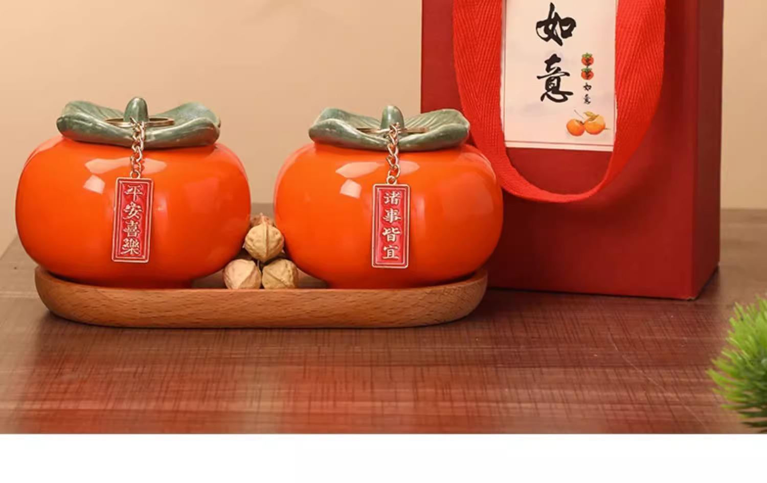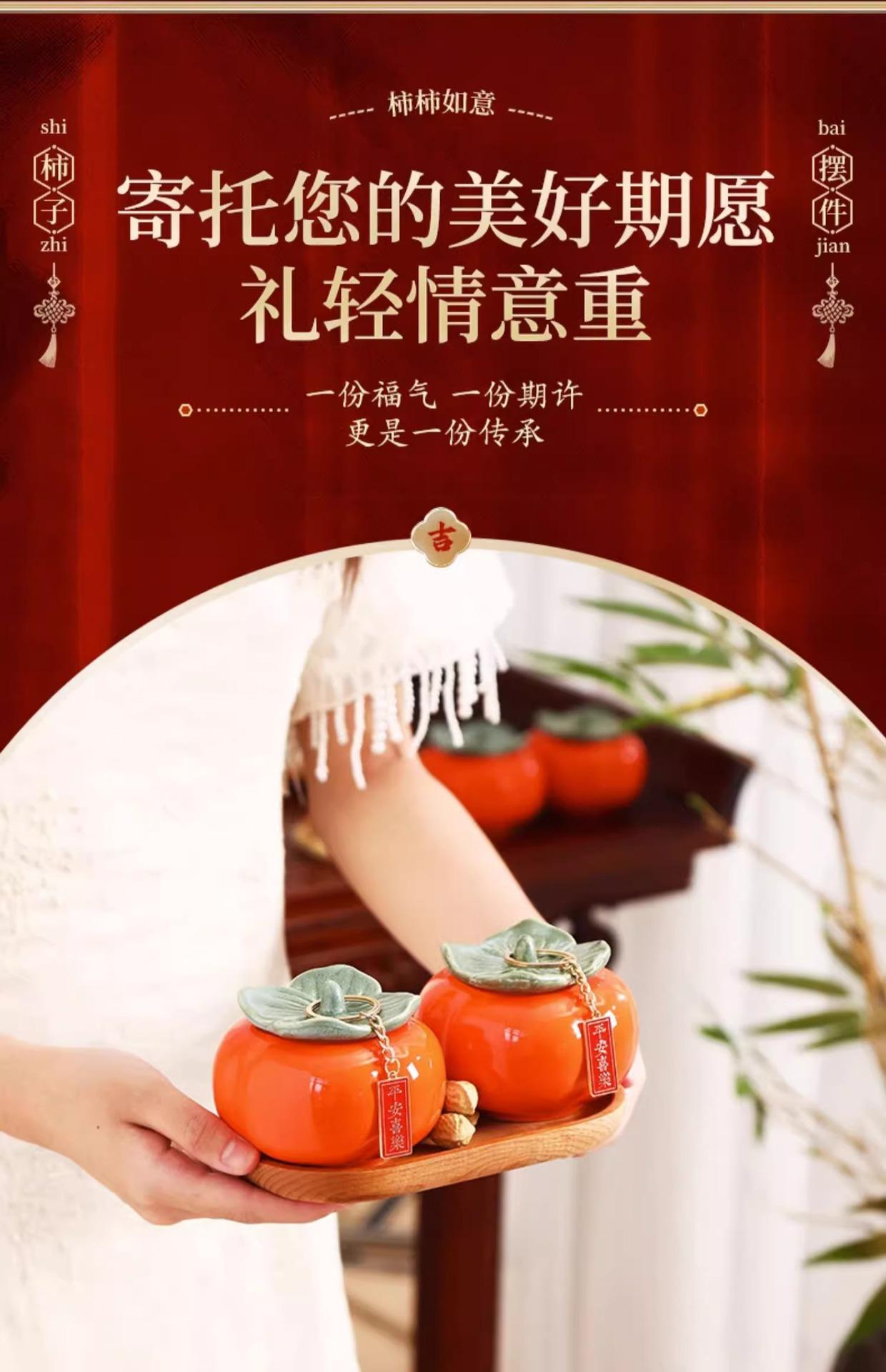 Good Persimmon Chengdou Ceramic Persimmon + Persimmon Ruyi Pendant + Portable Gift Box + Solid Wood Tray