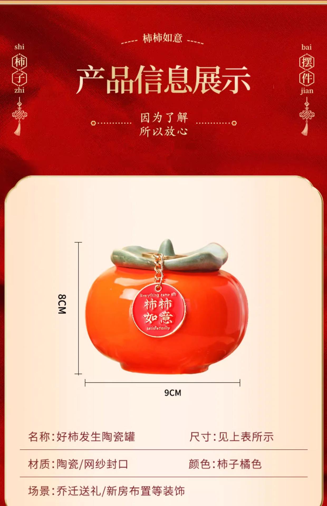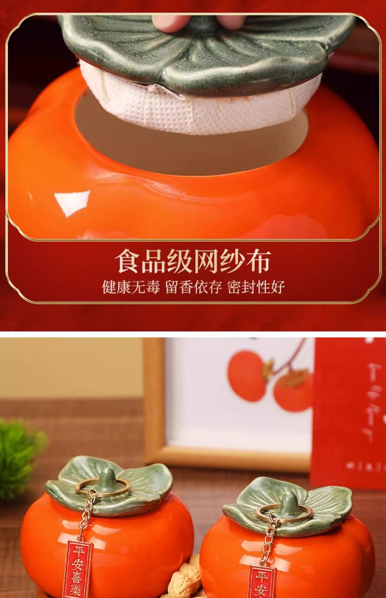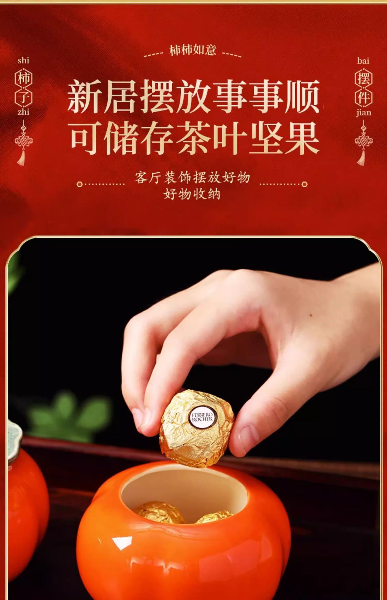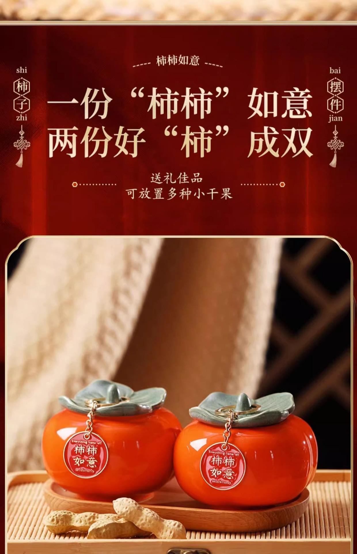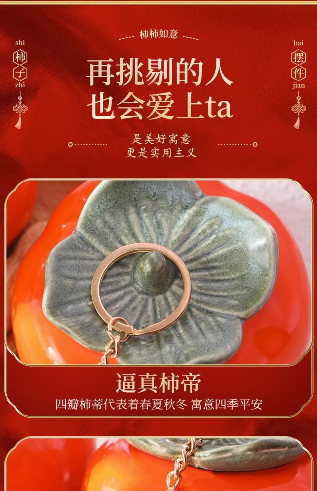 Good Persimmon Chengdou Ceramic Persimmon + Persimmon Ruyi Pendant + Portable Gift Box + Solid Wood Tray
