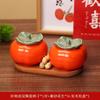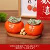 Good Persimmon Chengdou Ceramic Persimmon + Persimmon Ruyi Pendant + Solid Wood Tray