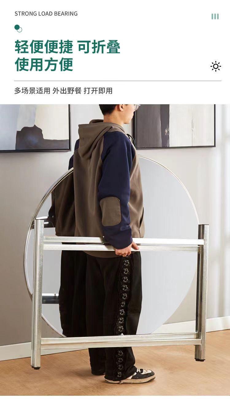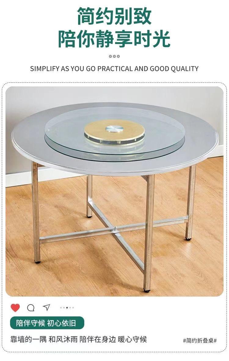 Mesa redonda de acero inoxidable engrosada, plegable para el hogar, para comer tarde en la noche, barbacoa, mesa redonda grande, mesa de comedor extra gruesa