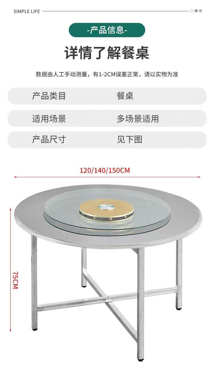 Mesa de comedor de acero inoxidable para el hogar, mesa redonda pequeña para patio, puesto de comida, hotel, mesa para banquetes de barbacoa, modelo económico