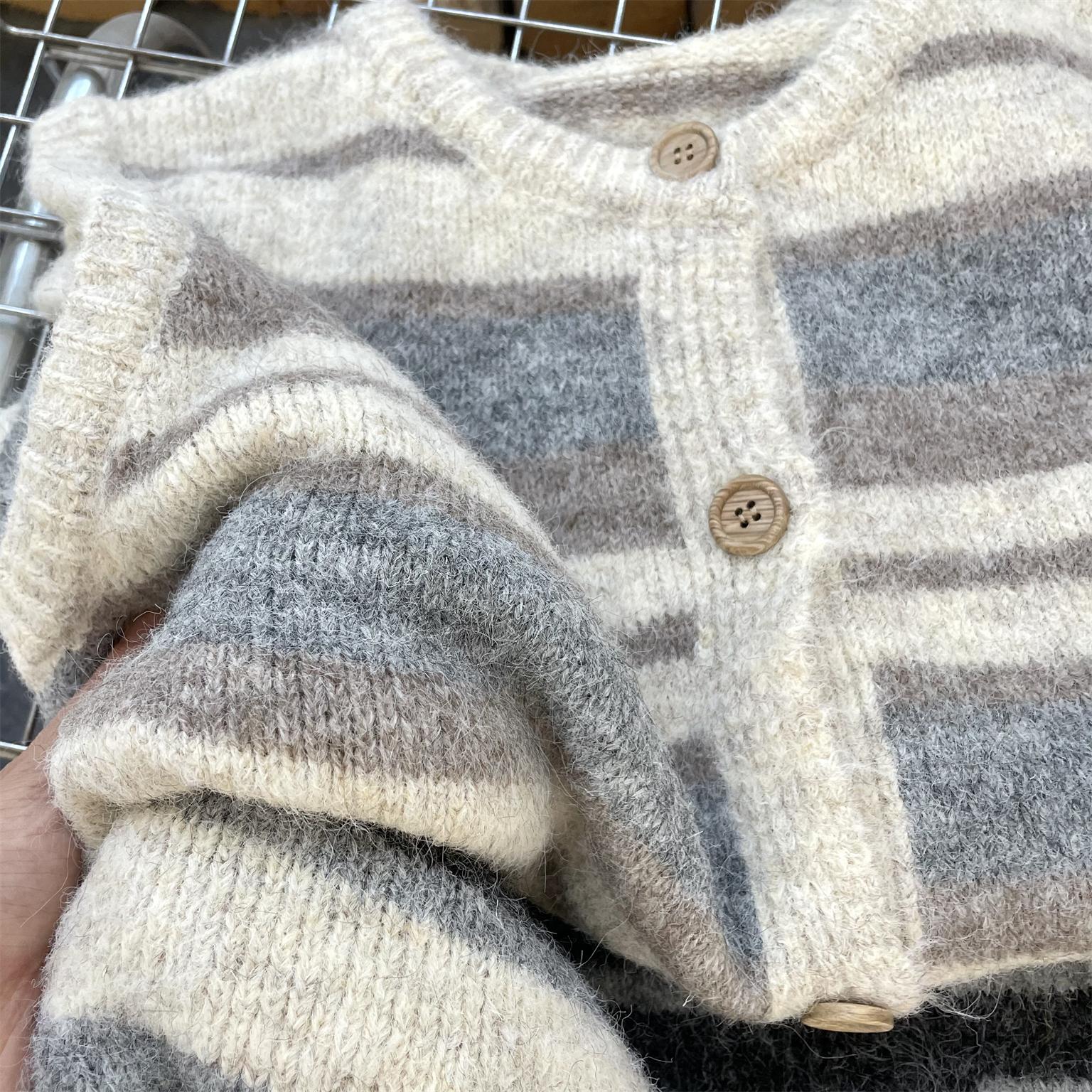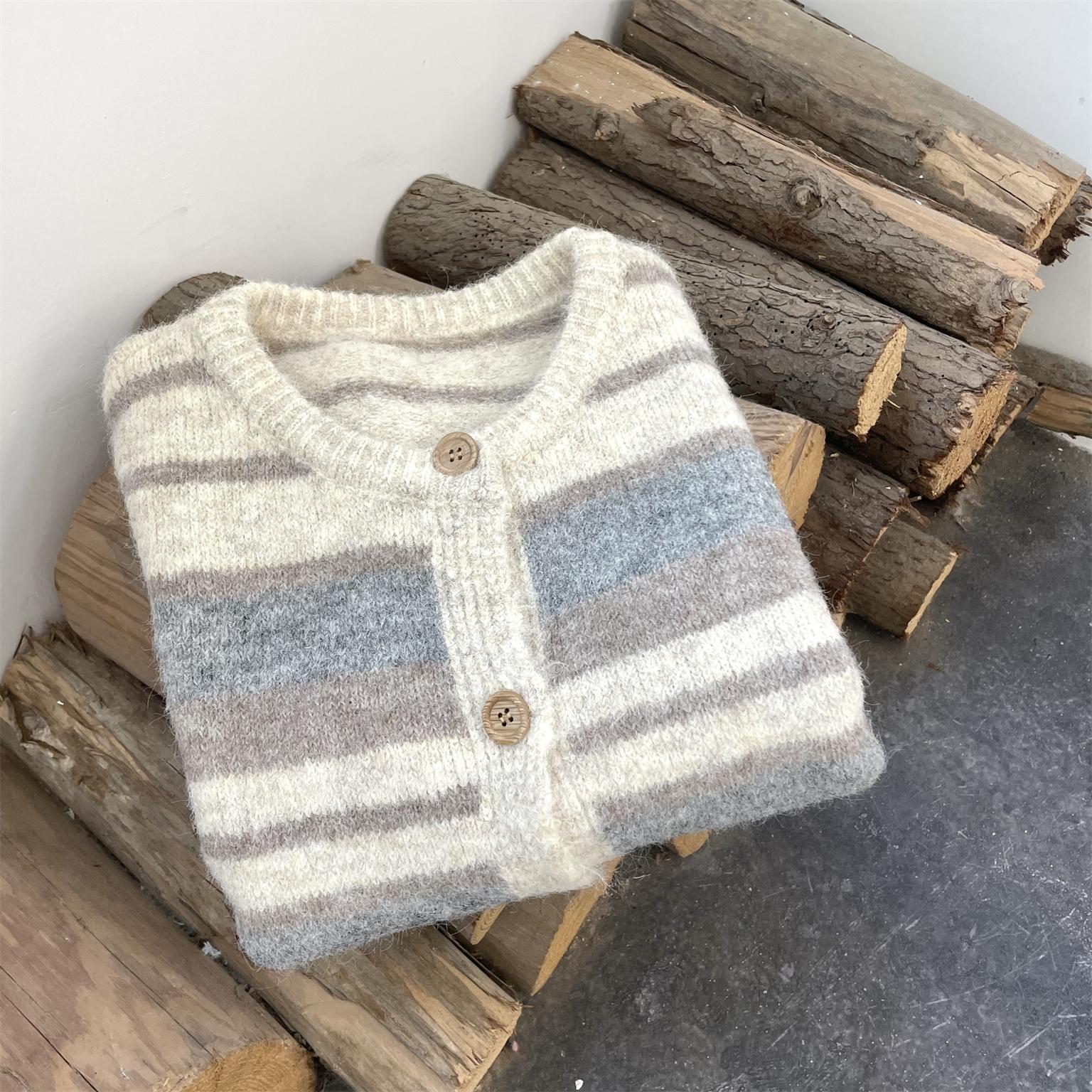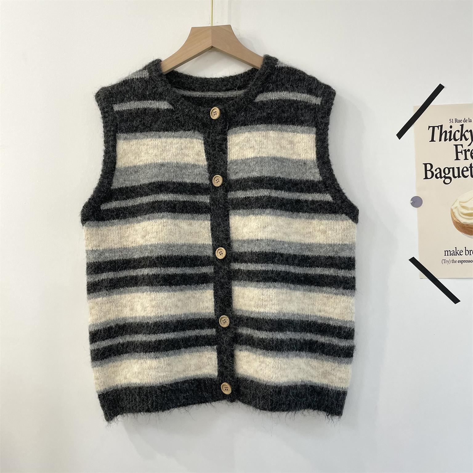 Más fácil de combinar Estilo Universitario Dulce para Partido Primavera y Otoño 2025 Chaleco Chaleco Regular Suelto Tejido de Lana Rayado
