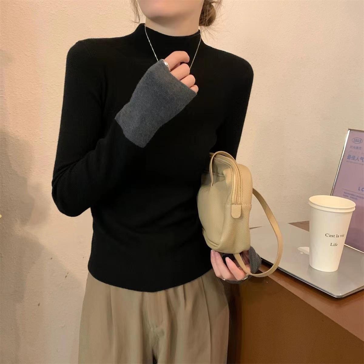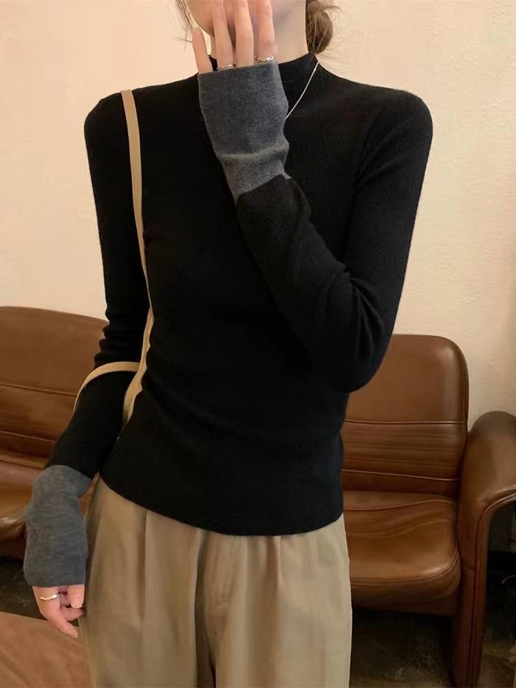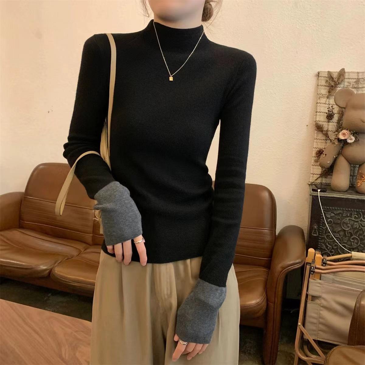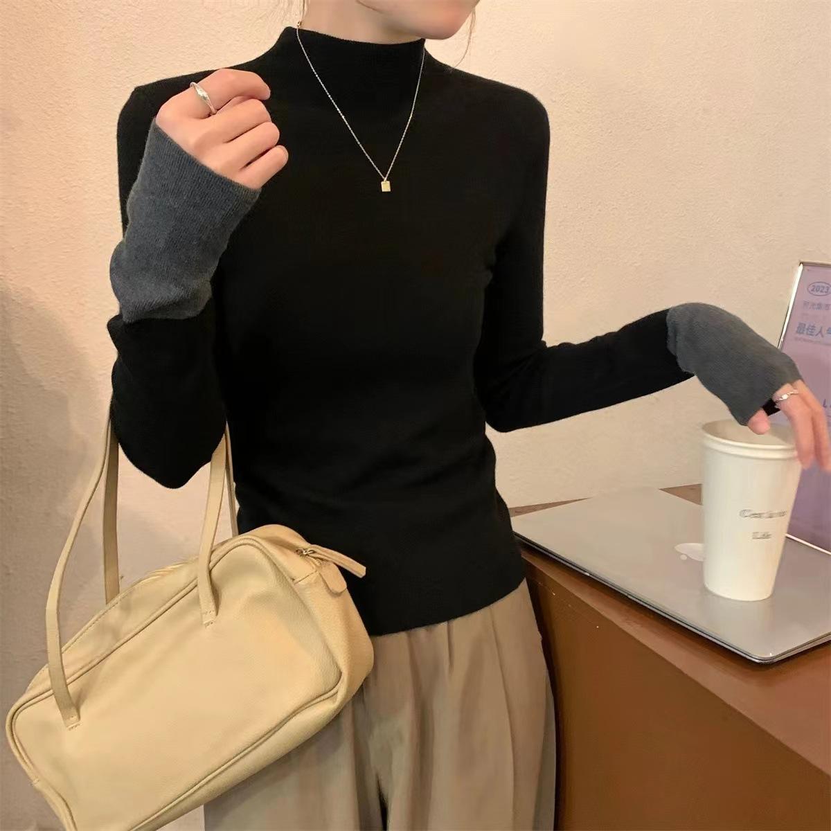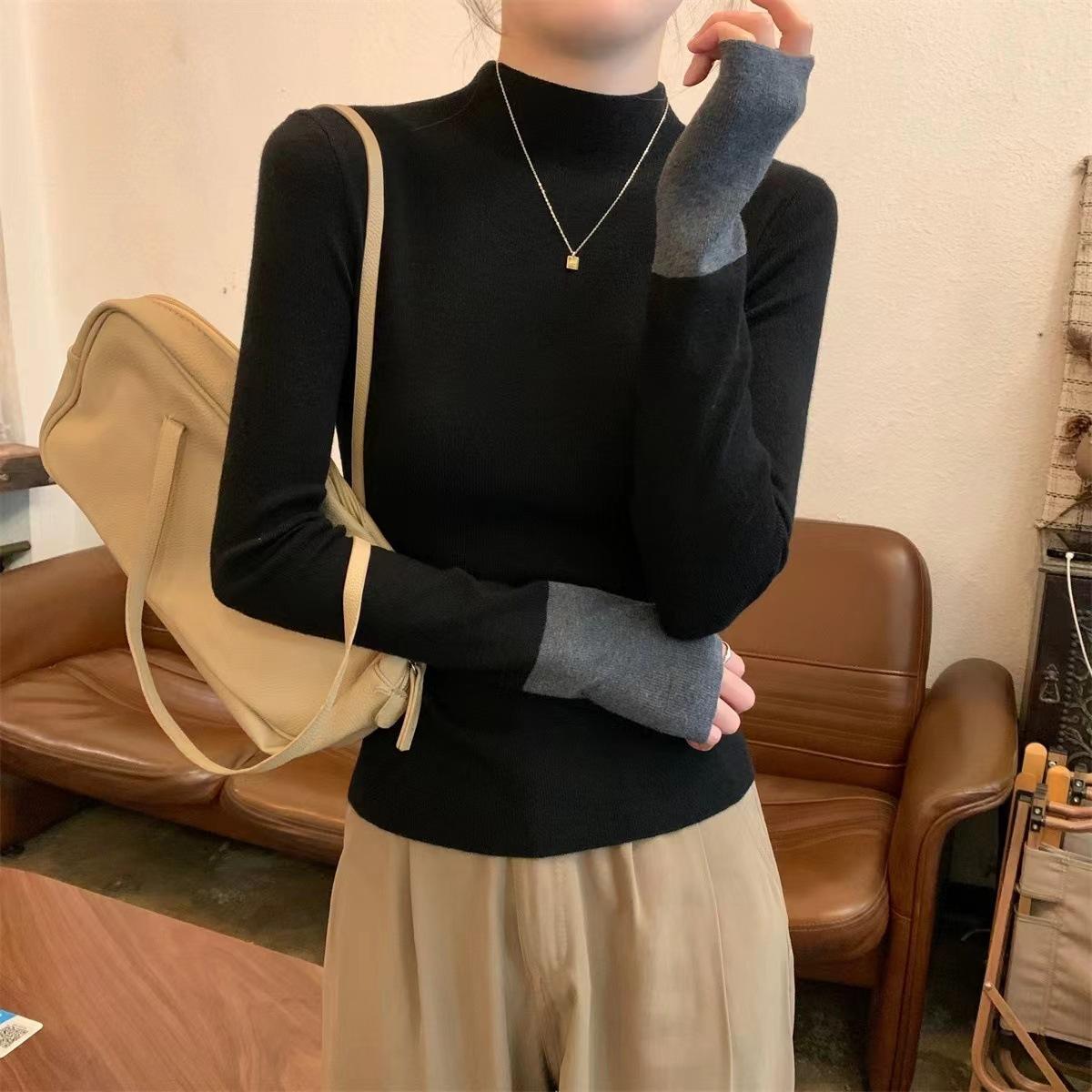 Suéter de punto elegante con cuello alto y puños a juego de color, estilo coreano, otoño e invierno, nuevo, de comercio exterior, para mujer
