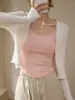 Camisola Blanca Corta para Mujer 2025 Nuevo Estilo Algodón Acanalado para Uso Interior y Exterior Ajuste Entallado Top sin Mangas para Verano