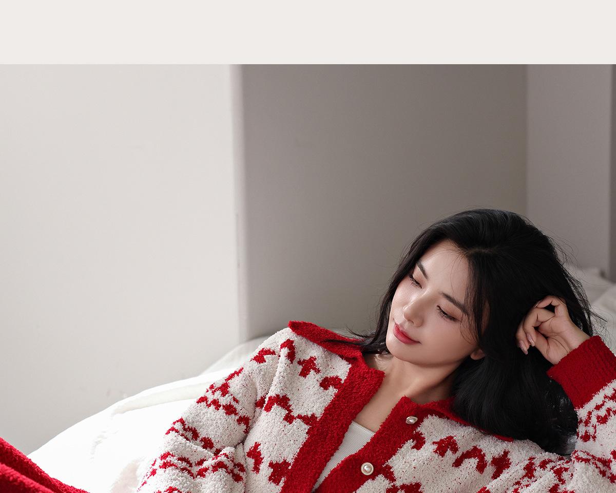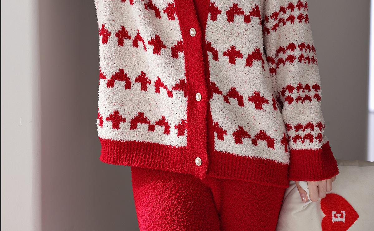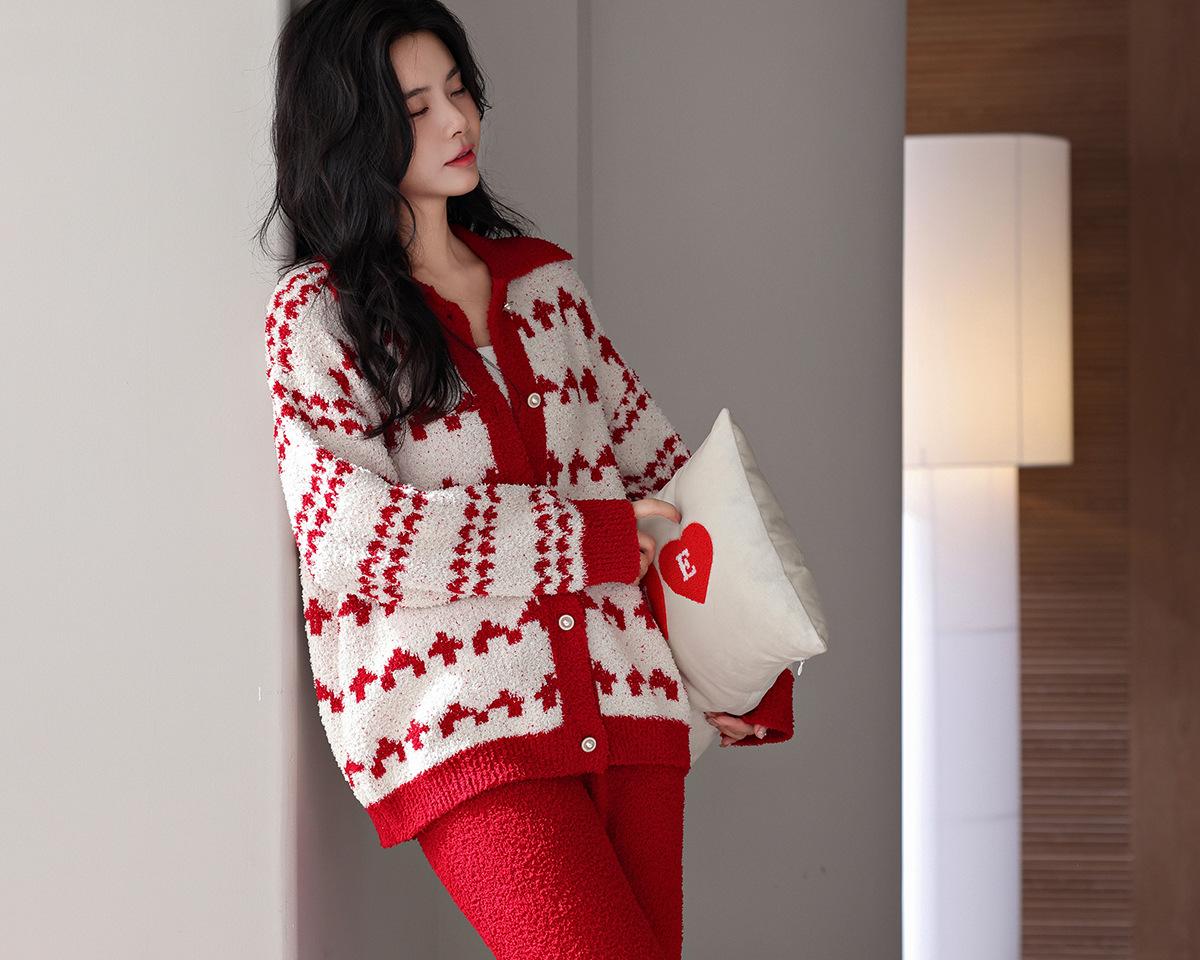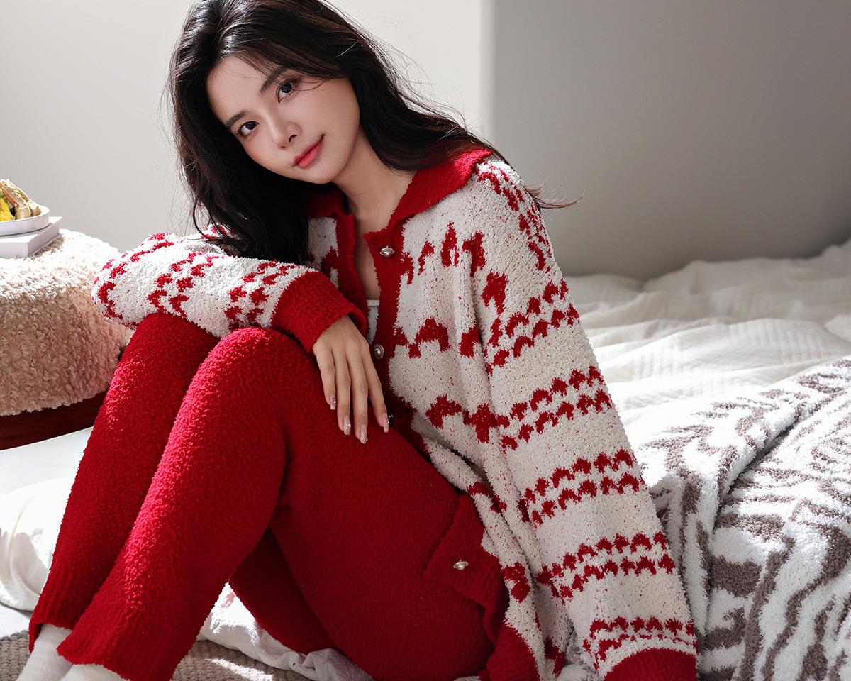 [Terciopelo Suave y Esponjoso] Pijamas de Otoño e Invierno para Mujer, Gruesos y Cálidos, Rojo, Conjunto para Casa de Terciopelo Coral Moderno y Elegante