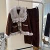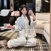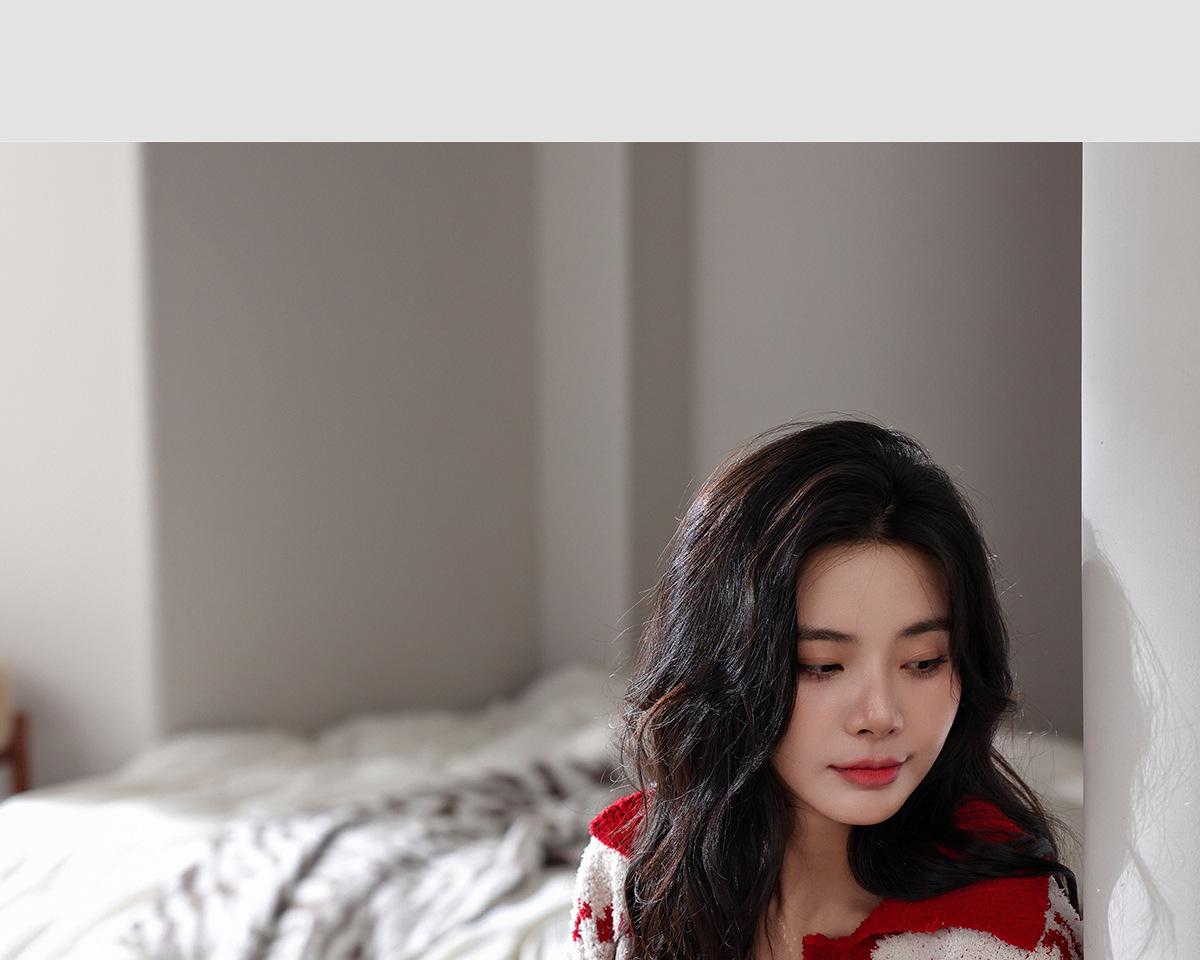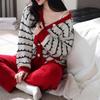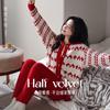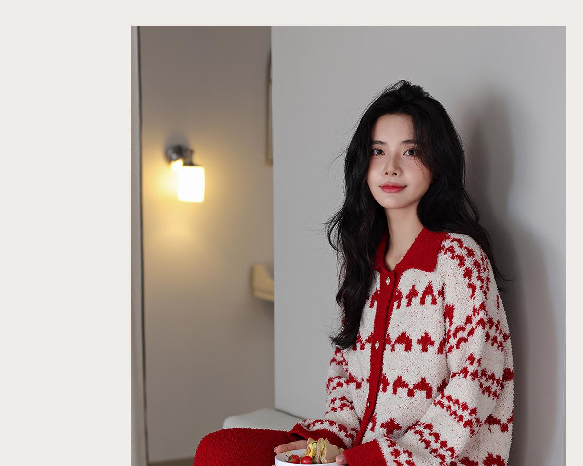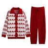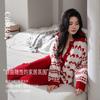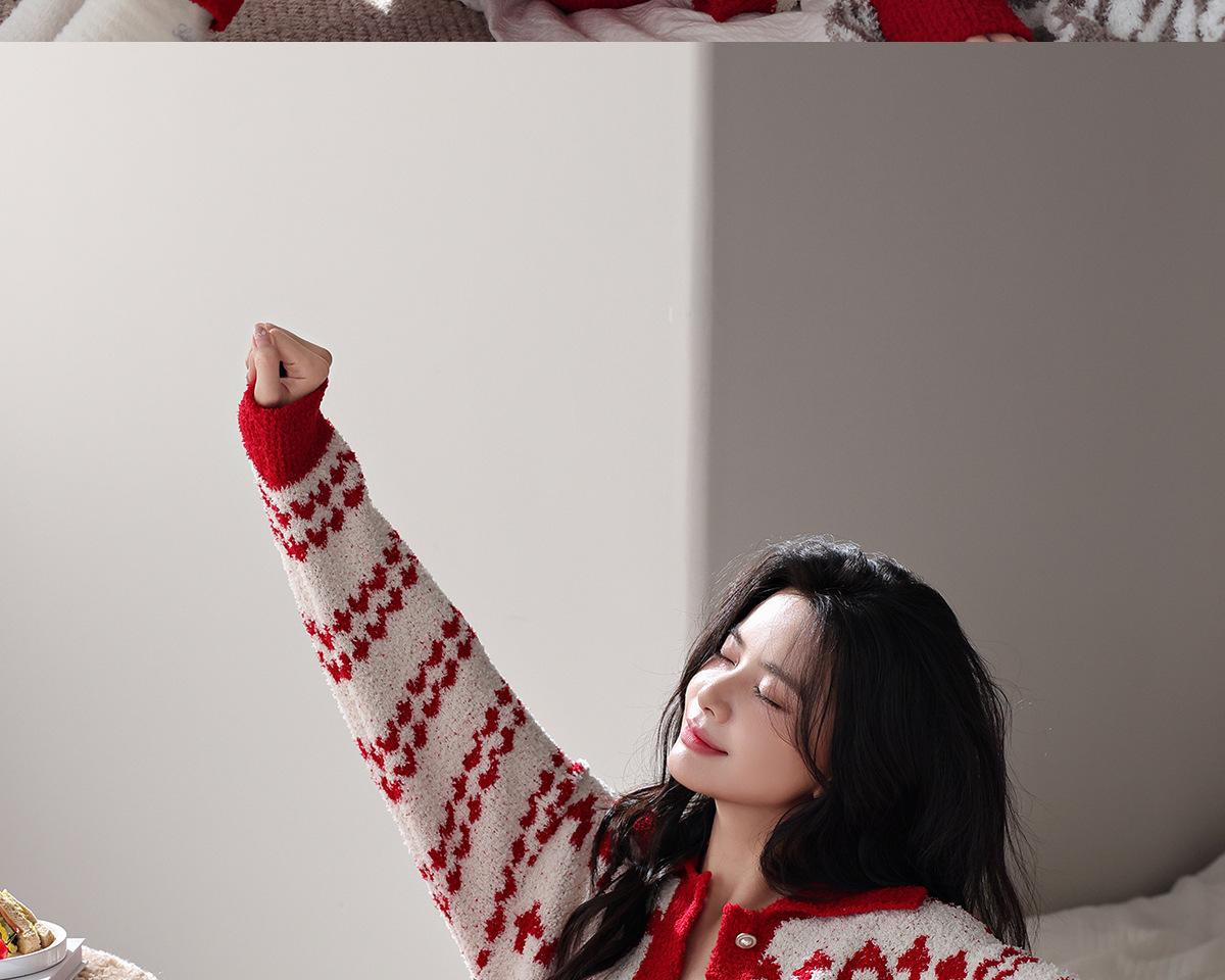 [Terciopelo Suave y Esponjoso] Pijamas de Otoño e Invierno para Mujer, Gruesos y Cálidos, Rojo, Conjunto para Casa de Terciopelo Coral Moderno y Elegante