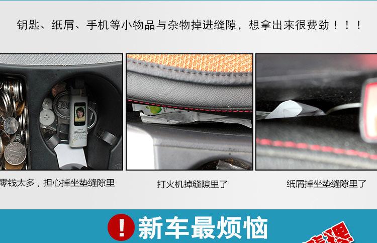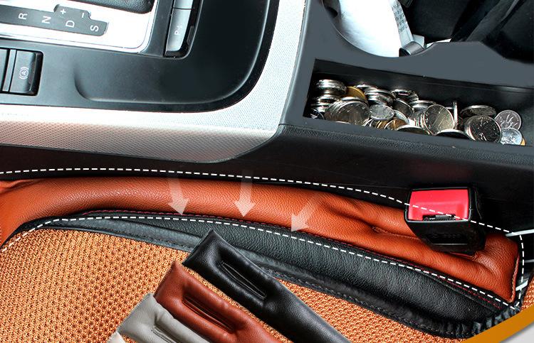 Este producto utiliza material de cuero de microfibra para cubiertas de huecos de coche para evitar que objetos pequeños caigan debajo del asiento.