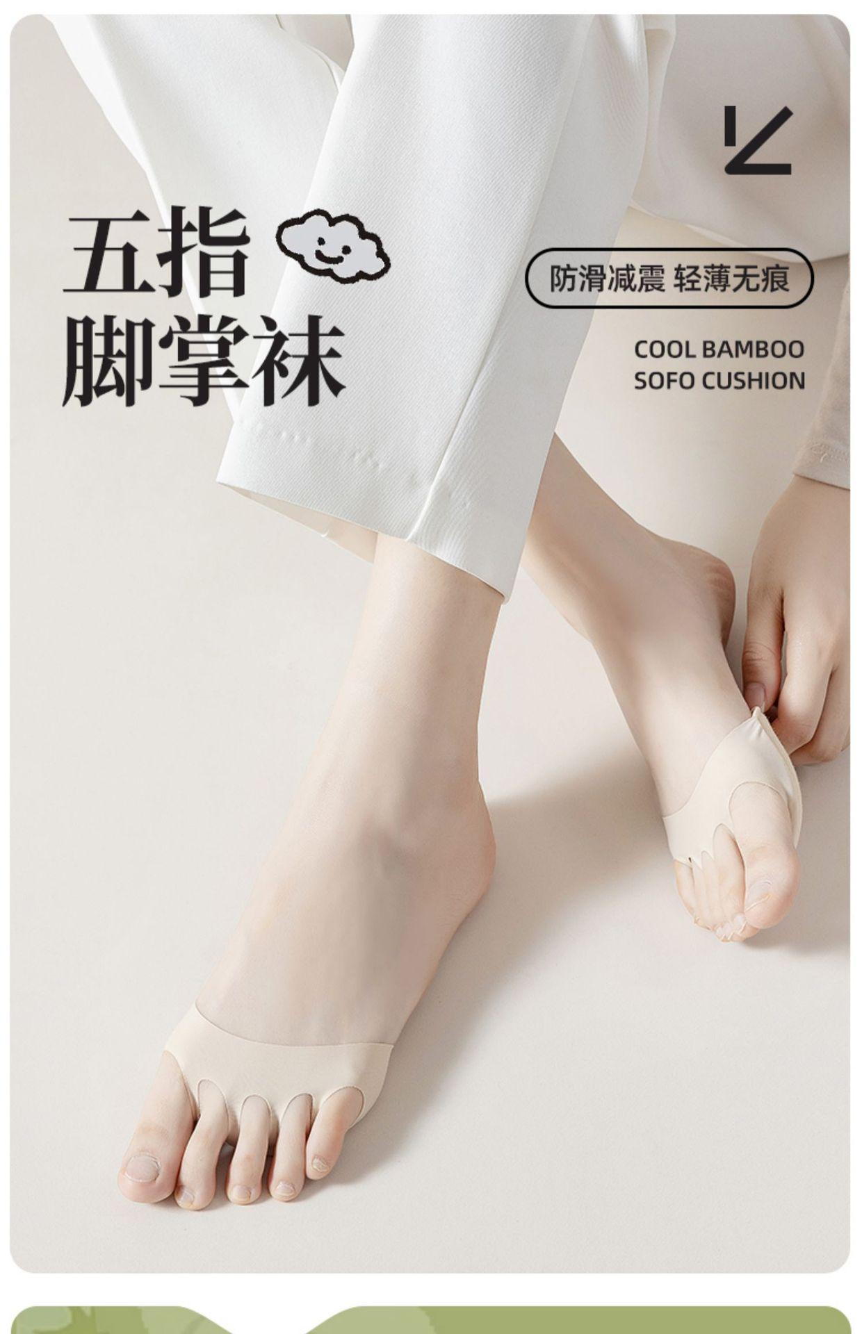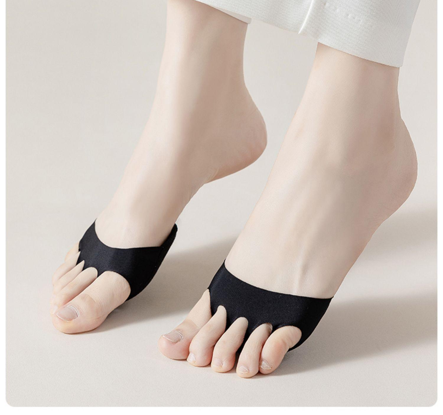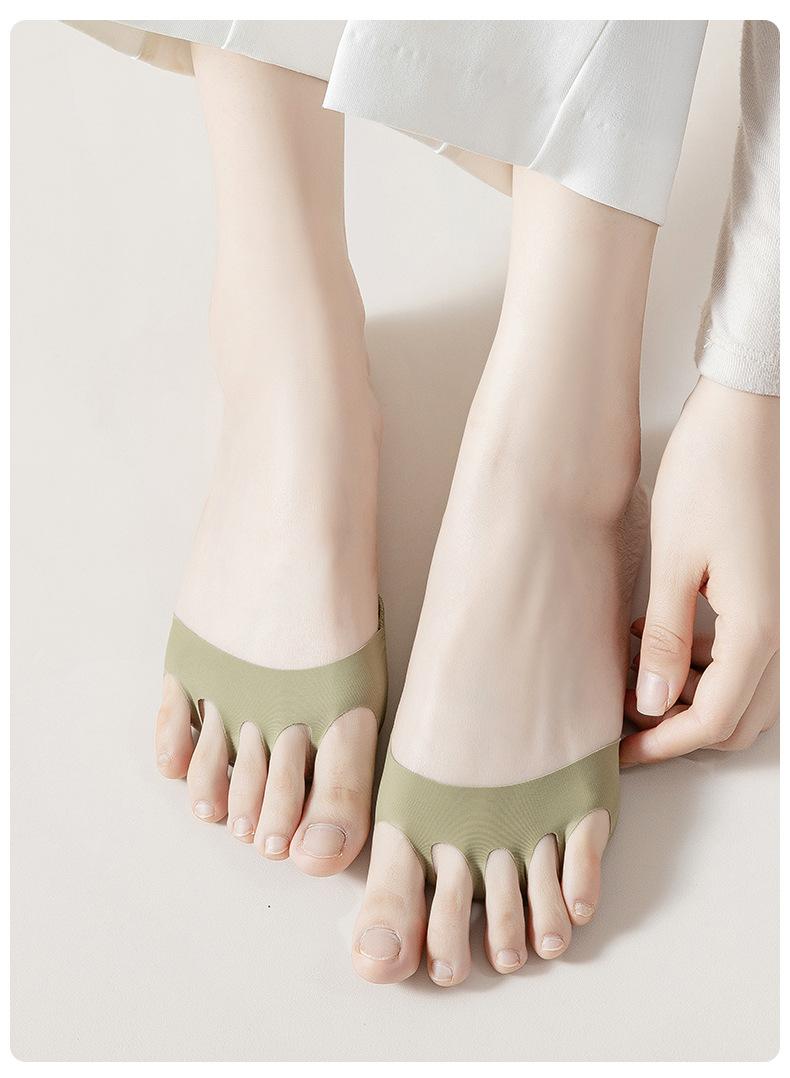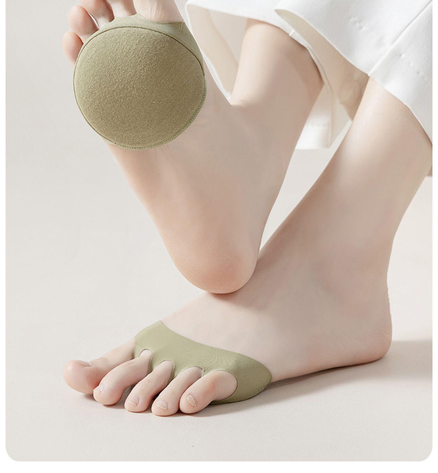 Calcetines de verano para mujer, finos, invisibles, antideslizantes, con tacón alto, de cinco dedos y media palma.
