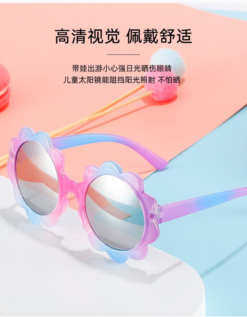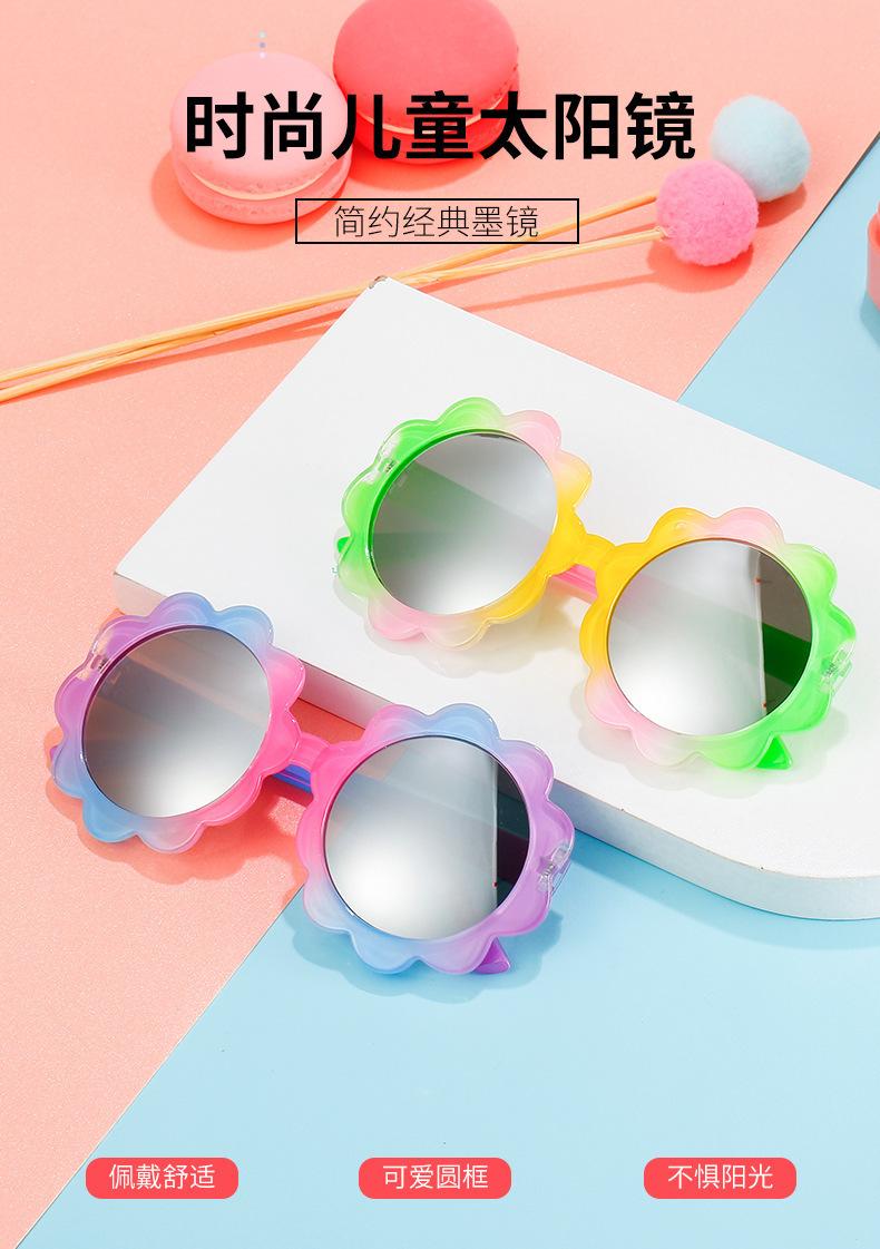 Nuevas gafas de sol para bebé de girasol, gafas de sol coloridas para niños, gafas redondas decorativas lindas para niños y niñas, venta al por mayor