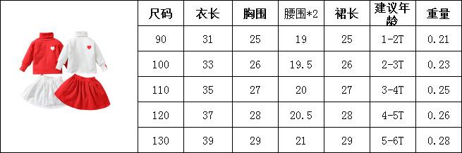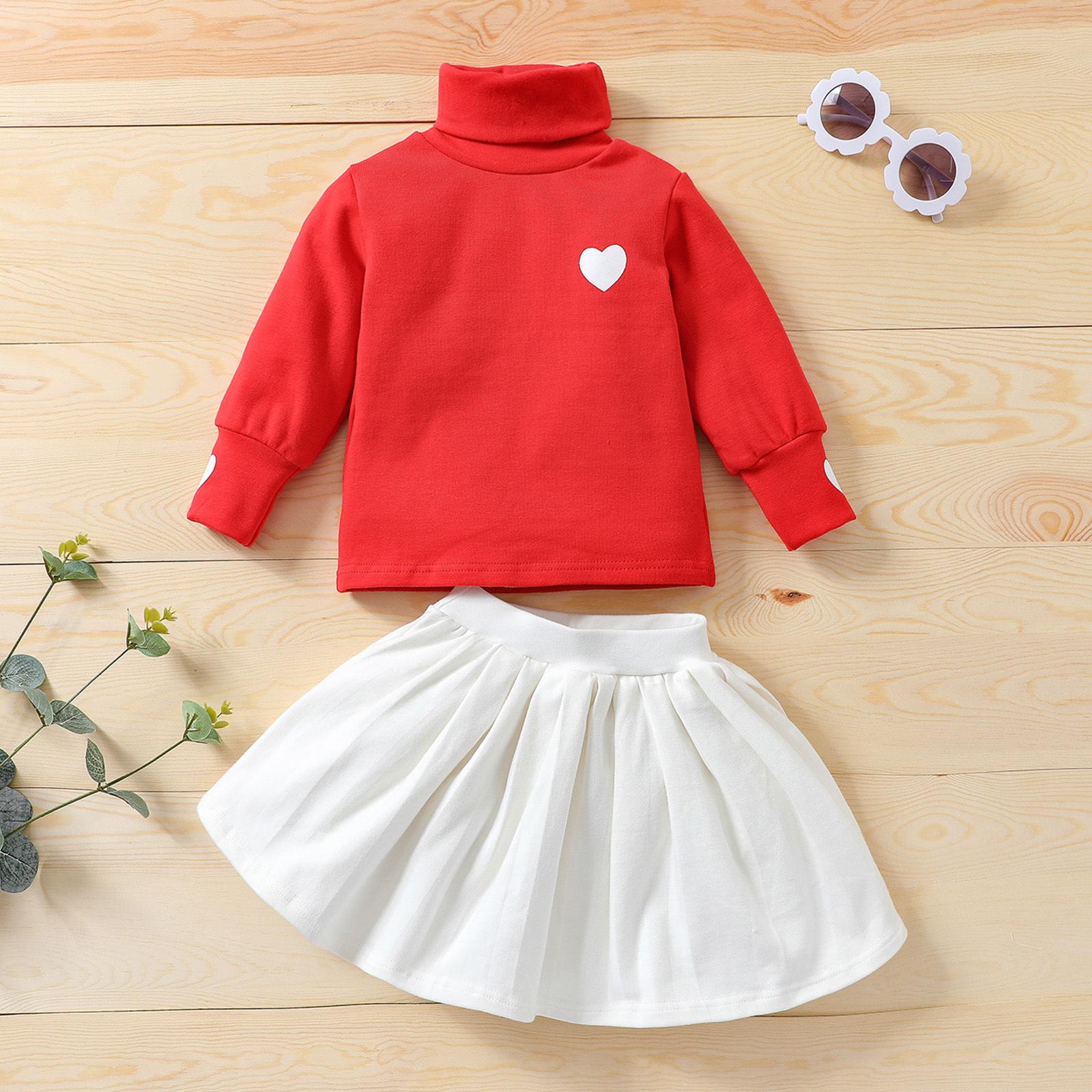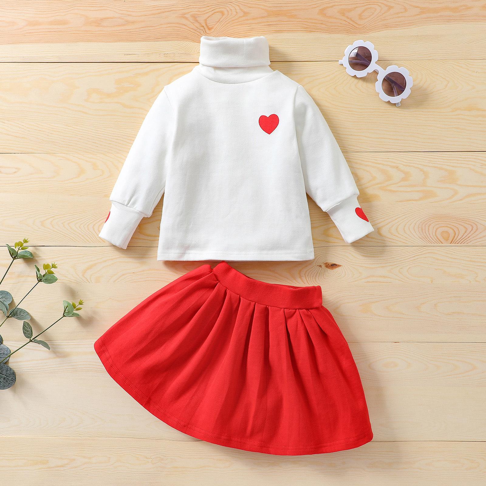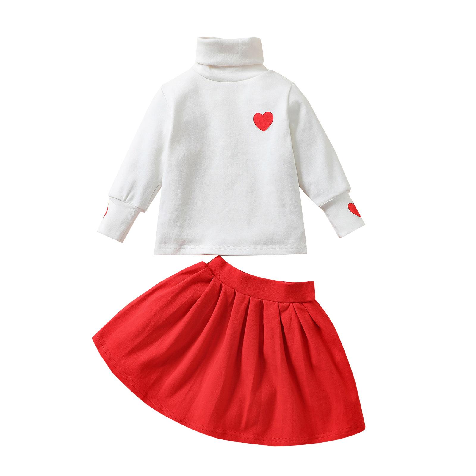 Ropa infantil transfronteriza Comercio Exterior Conjunto de vestido superior de manga larga con estampado de amor y cuello alto para niños multicolor una generación de cabello