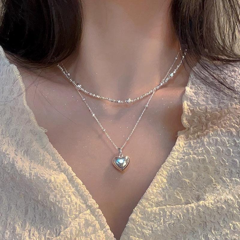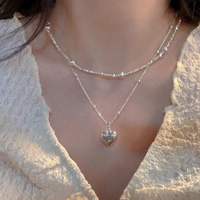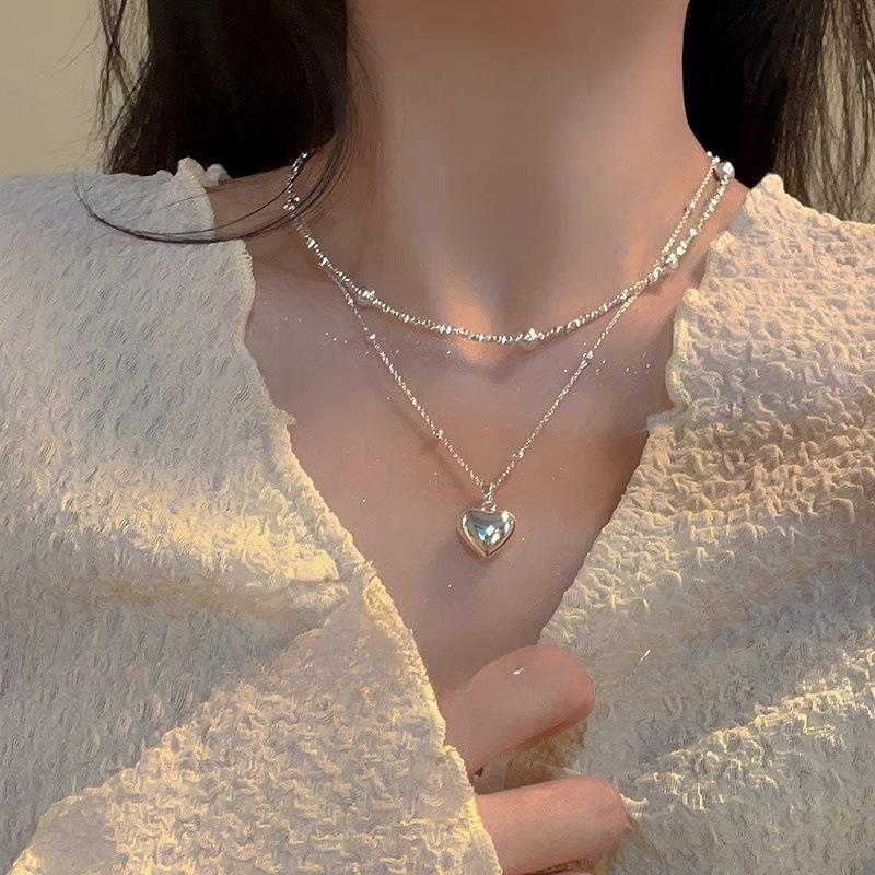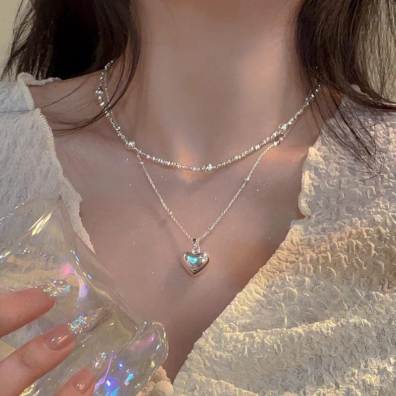 Collar de amor estilo coreano para mujer, diseño de nicho de plata 925, ligero, de lujo, de alta gama, estilo Ins, cadena de clavícula apilada que combina con todo.