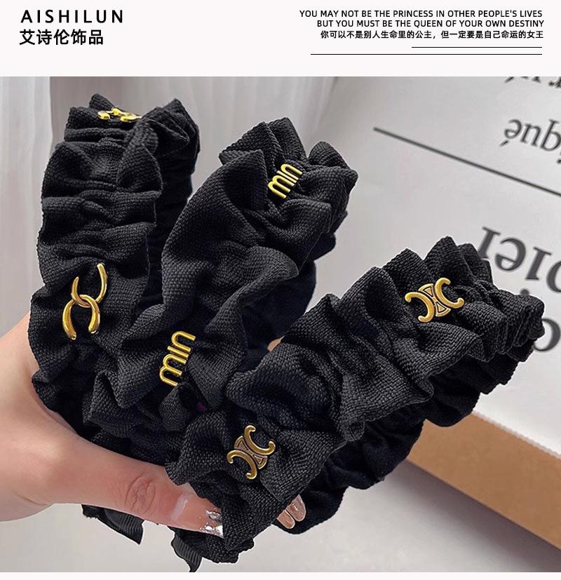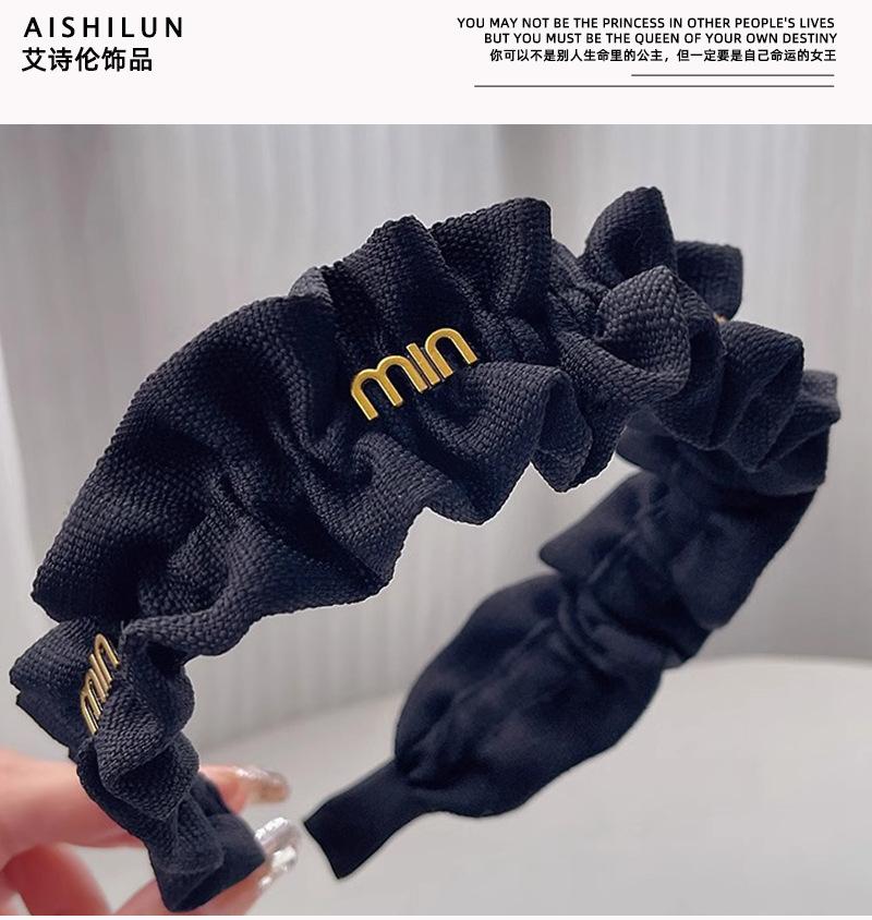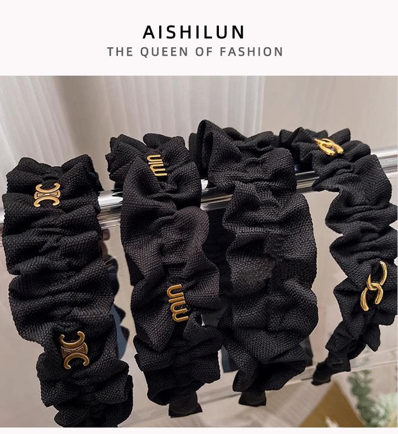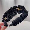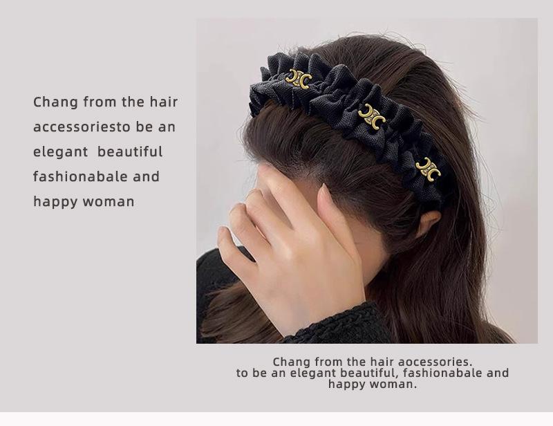 Diadema de horquilla negra de alta calidad para niña, plisada, de ala ancha, con parte superior de calavera, estilo coreano, nuevo tocado para prensar el cabello