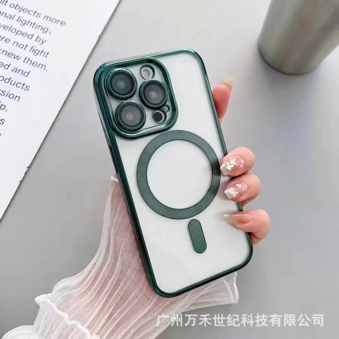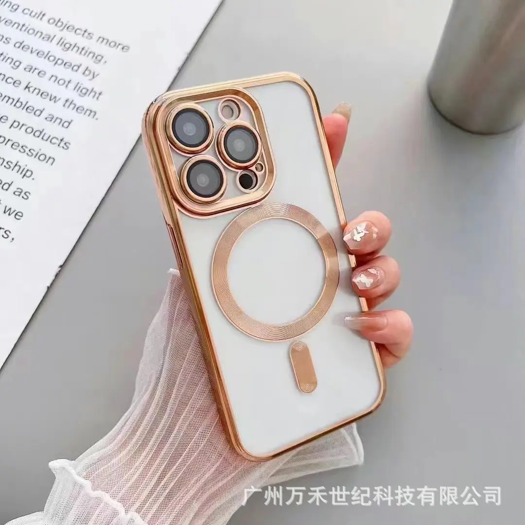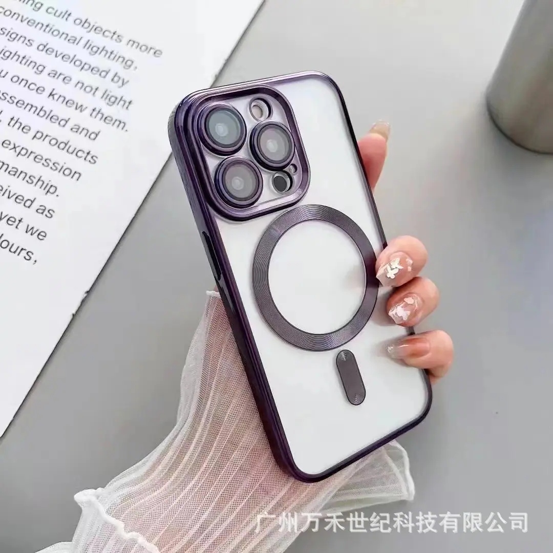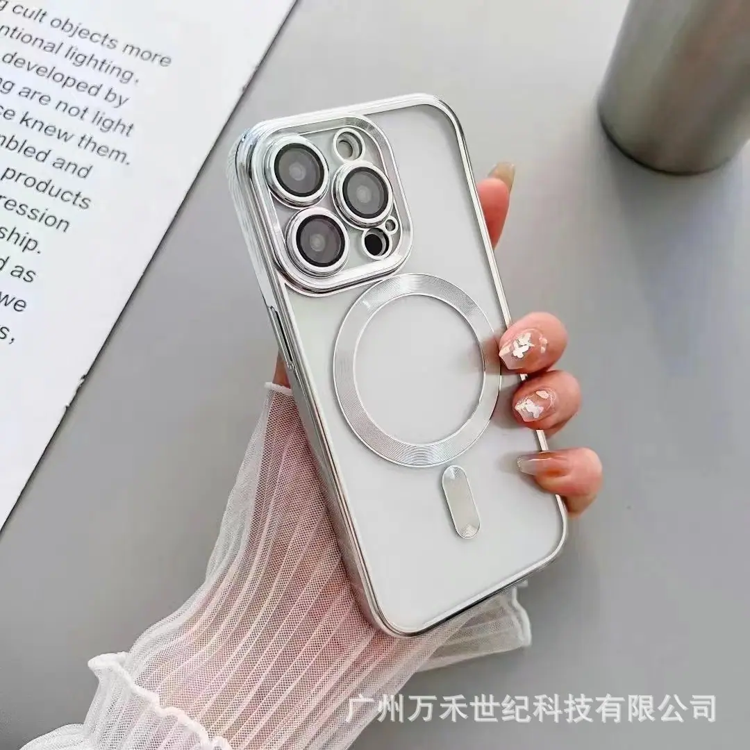 Patrón de CD Magnético Electrochapado Adecuado para Apple 17 Pro Max Funda de Teléfono Transparente iPhone 16 Carga Inalámbrica 15 Suave Transfronterizo