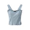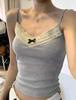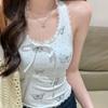 Camisola americana con lazo de encaje estilo BM para mujer, corte entallado, adelgazante, dulce y sexy, parte inferior
